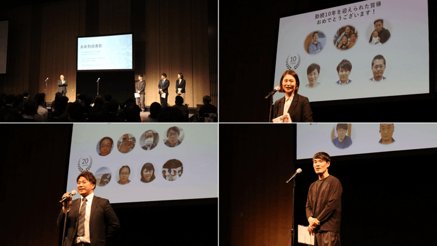 ここでは勤続10年目、20年目、30年以上の方々への表彰とサプライズプレゼントの贈呈がありました。