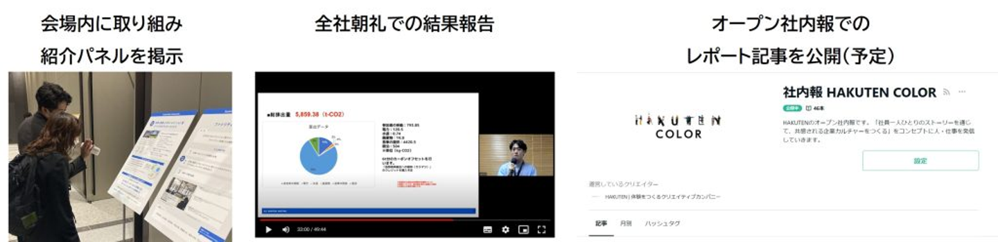 ゼロ・エミッション型イベントの実現に向け、全社員の意識変容のため、方針共有や取り組みの紹介を様々な形で実施しました。
