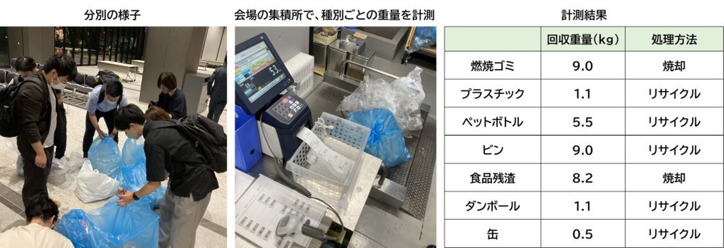 開催終了後に、リサイクル率の向上のため、プラスチックの分別を徹底し、種別ごとの排出量を計測しました。