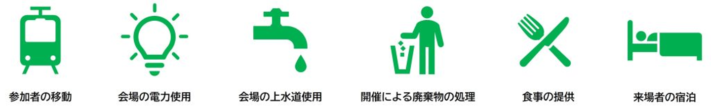 算定範囲については、電力使用量の算定のみに留まらず、環境省が発行する「会議・イベントにおけるカーボン・オフセットの取組のための手引き(Ver.1.0)」に基づき、対象範囲を以下のとおりに設定しました。