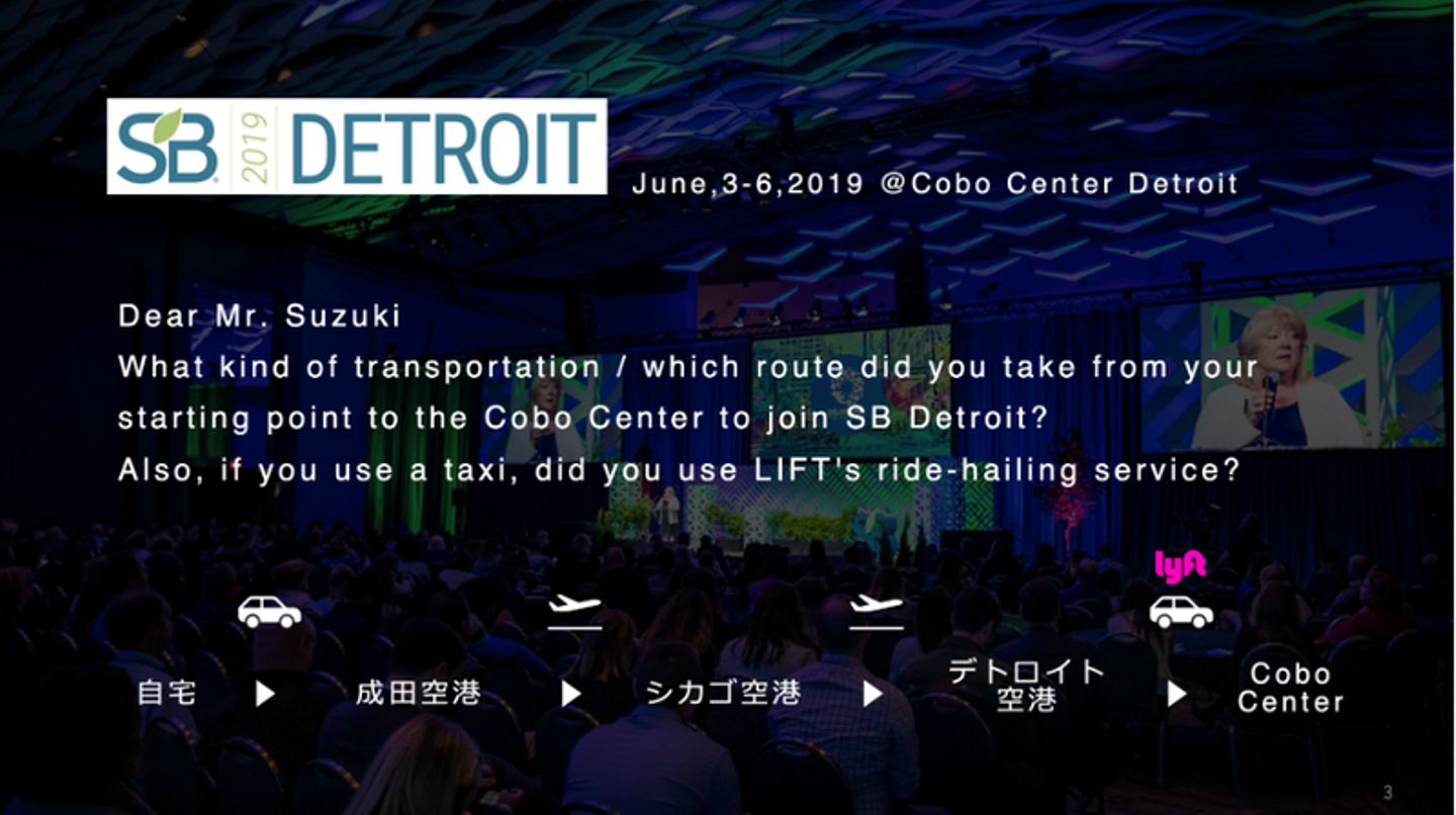 1つ目は開催にかかるカーボンの徹底した算出。移動に利用した航空機はもちろんのこと、自宅から空港まで、さらには現地空港から開催地までの移動手段も参加者へのアンケートで記入を求められたという。
