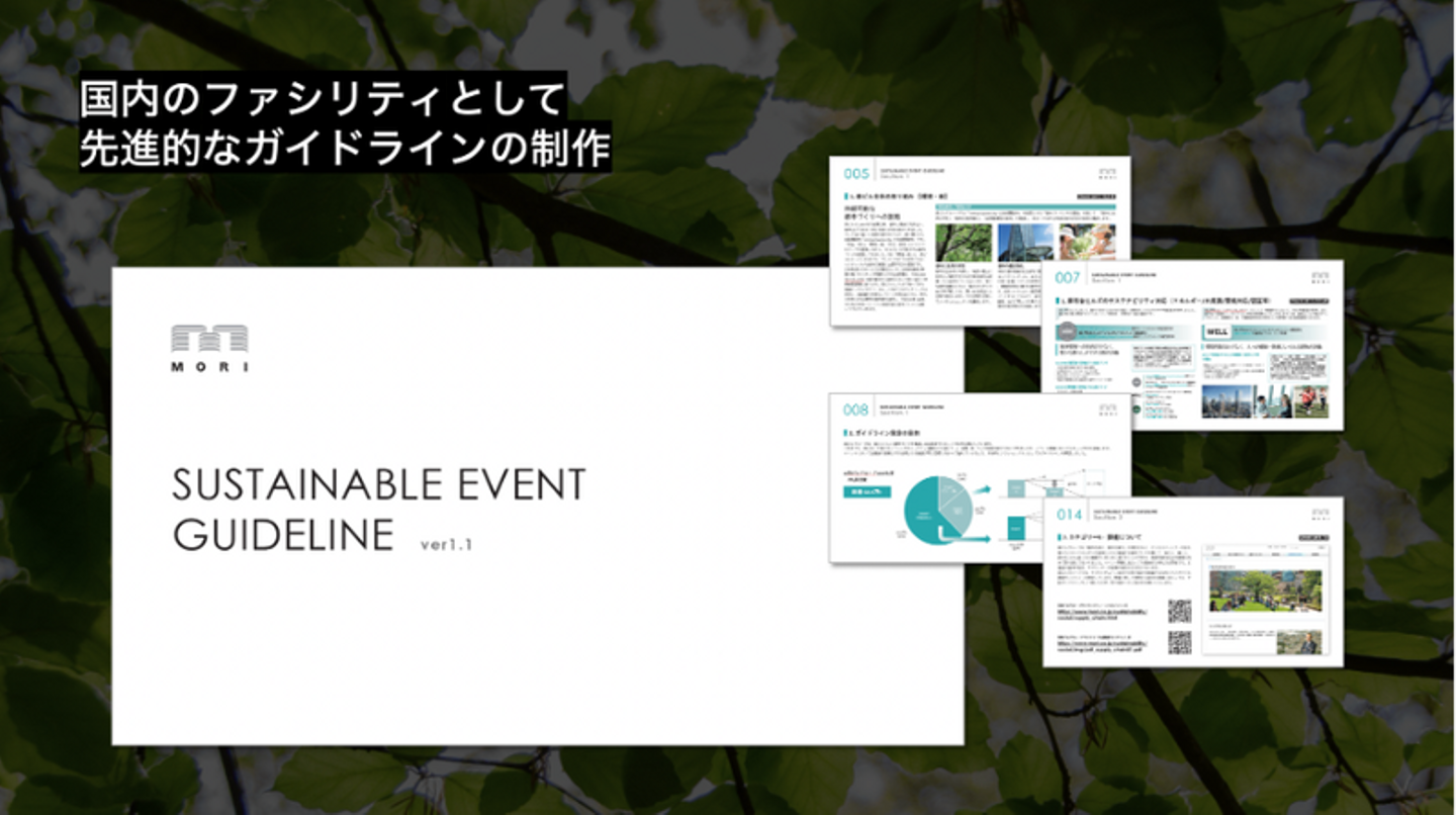 このガイドラインは森ビルのサステナビリティ方針や、施設としての対応、そしてTOKYO NODEを利用する主催者へのお願いという3つで構成されている。