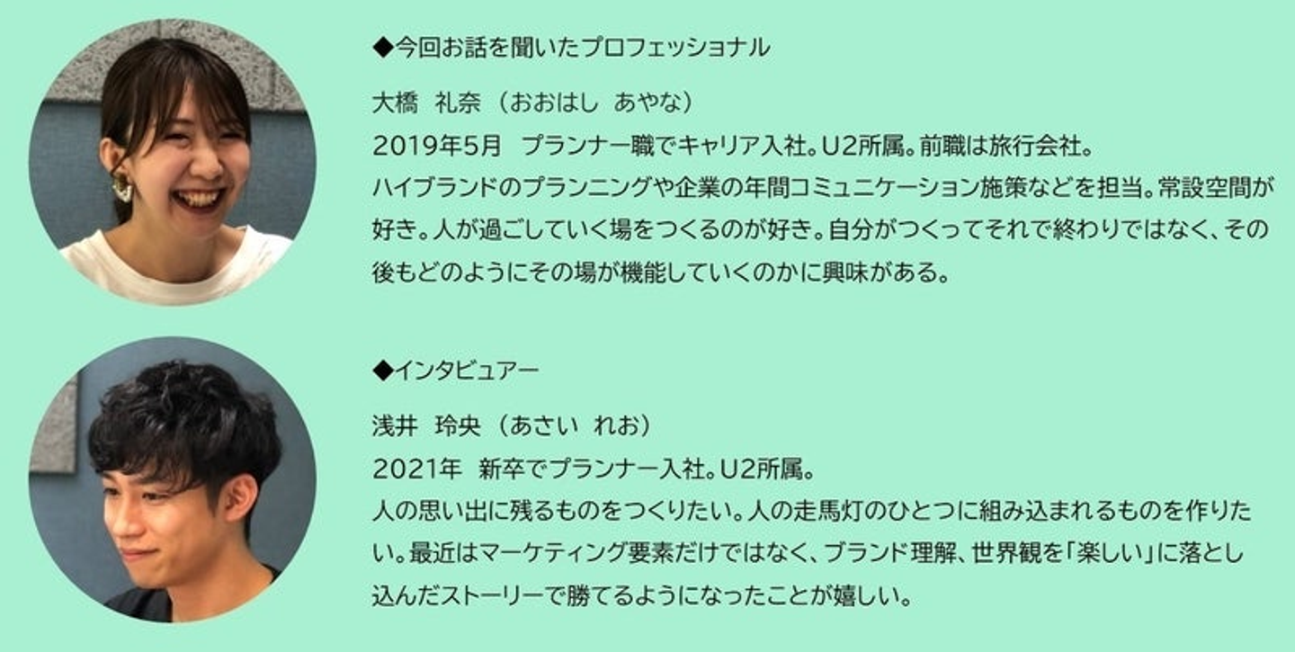最後となる今回は「プランナー」がテーマ。経験豊富な大橋さんに3年目の浅井さんと一緒にお話を伺いました!