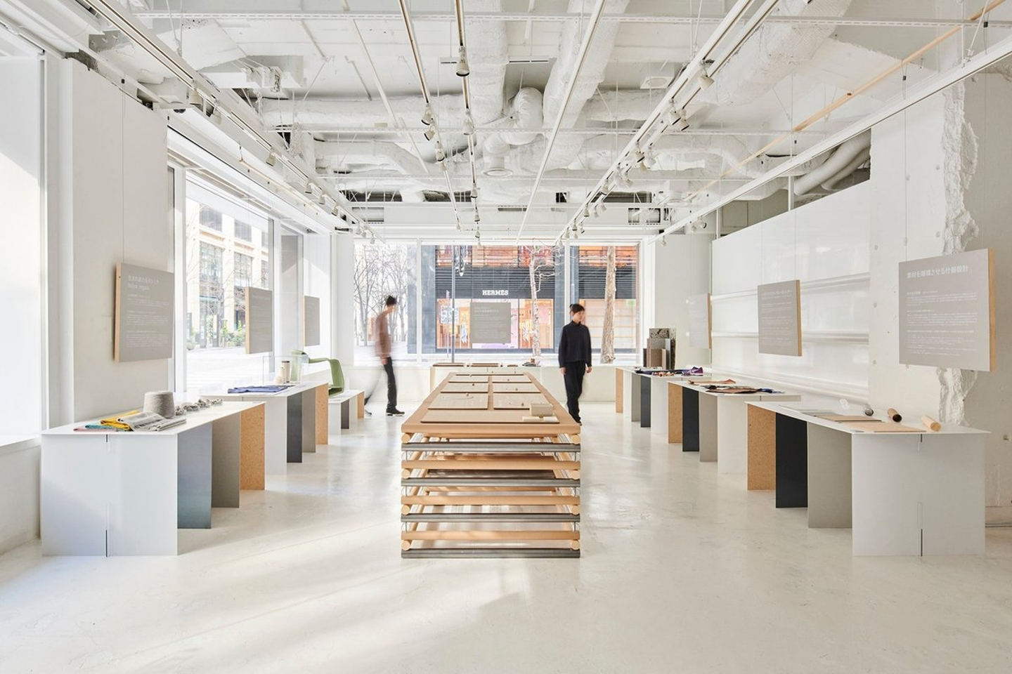 そこで、ウェブサイト「LIBRARY」に掲載された事例を活かし、「伝統工芸や、日本の自然由来の資源、地域に根付いたもの」をリアルで見て、触れて、学ぶことができる場として、今回の展覧会を設計することに。また、ただ事例を展示するだけではなく、空間デザインのモチーフとしても活用してみたり……それが前回お話した廃瓦ですね。(前編はこちら↗)