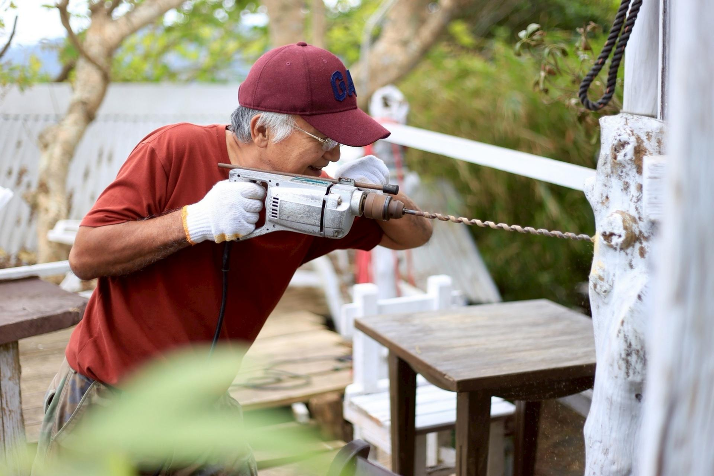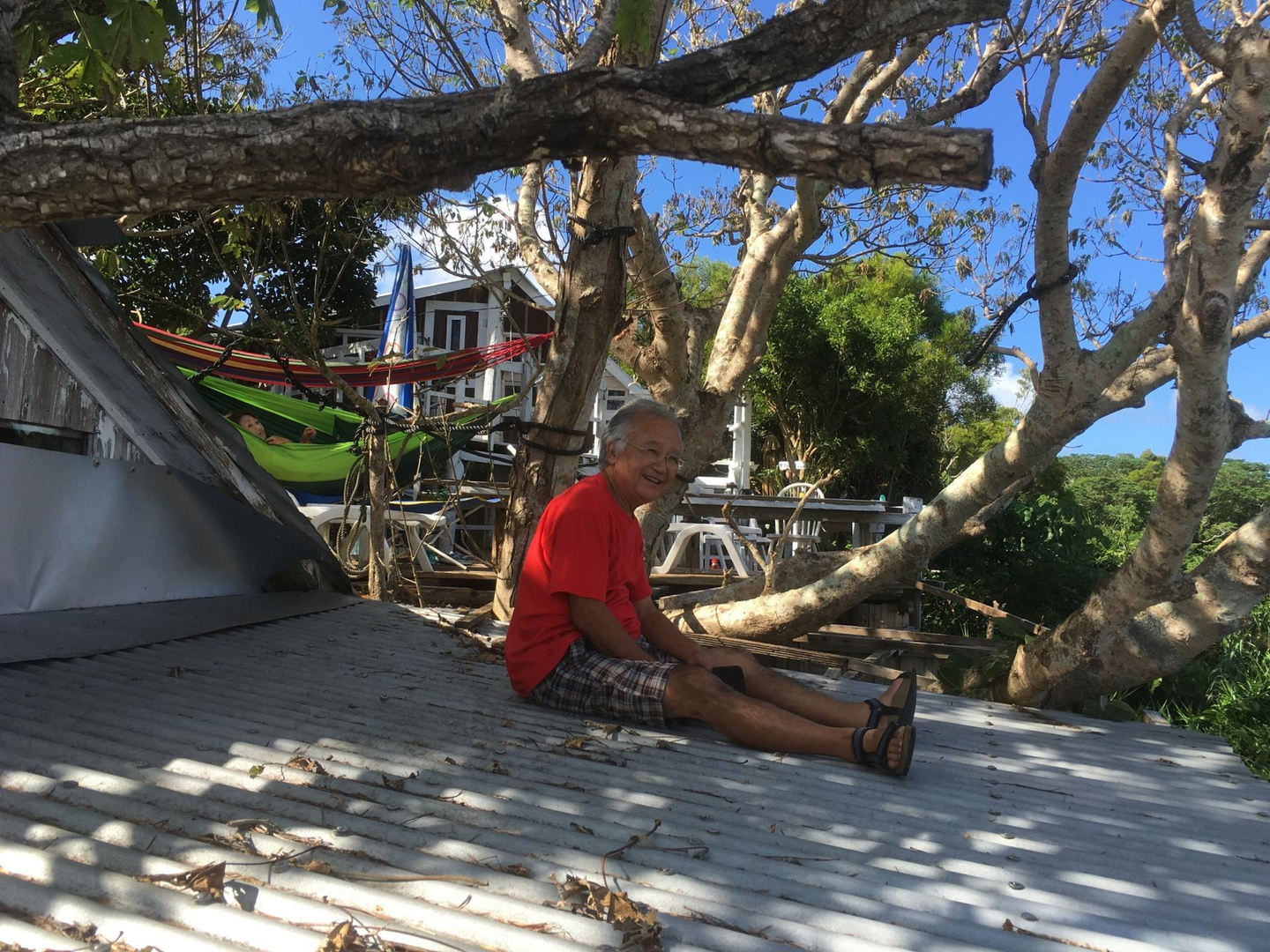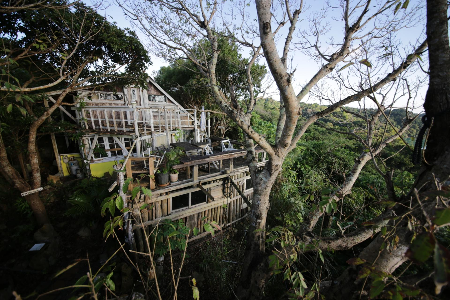 このツリーハウスを作ったおじいさんは、元々は東京の会社で働くサラリーマンだった。親の介護で沖縄に戻り、DIYで少しずつこの場所を作り上げたという。