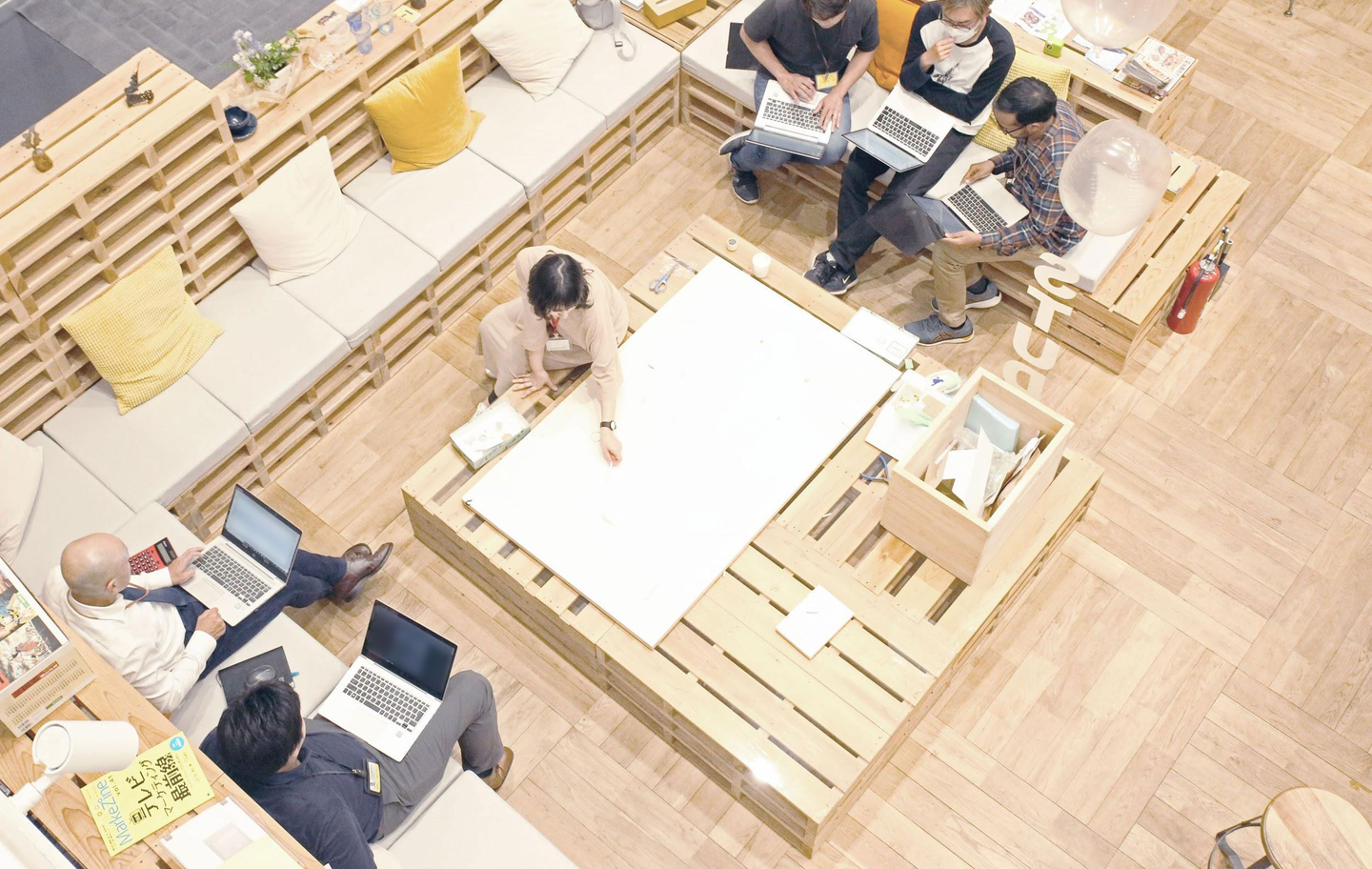 そういう状態を、これからかなり意識的に、何もしていないかように外から見えてしまうかもしれないんだけど、でもそれが面白い事がたくさんあるんだっていうヒントを会社として仕事をしている空間の中でアーティストがいる事でヒントを作っているとすごく思う。それは様々な形で試みる価値がある。