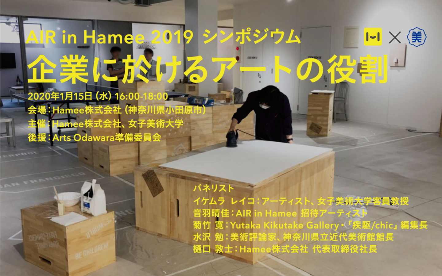 Hamee株式会社と女子美術大学は、2019年にHamee社内で開催されたアーティストインレジデンス企画「AIR in Hamee」のアーティスト選考委員と選出されたアーティストをパネリストに迎えて「AIR in Hamee 2019 シンポジウム」を開催しました。美術とビジネスの分野で創造性を発揮するパネリストたちが、3ヶ月間に渡るアーティスト・イン・レジデンスを振り返りながら、「企業におけるアートの役割」をテーマに語り合った、注目のシンポジウムをリポート。