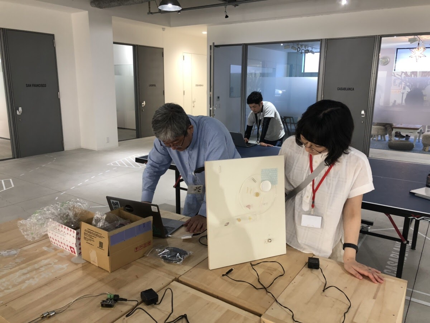 音羽:「オープンスタジオも2回目の頃には私もHameeに馴染んできて、たまたま通りかかった社員さんにはんだ付けを手伝ってもらったり、飛んで行った風船を回収してもらったり、コーヒーを淹れていただいたりとか、皆さんに色んなことを助けてもらって制作していました。」