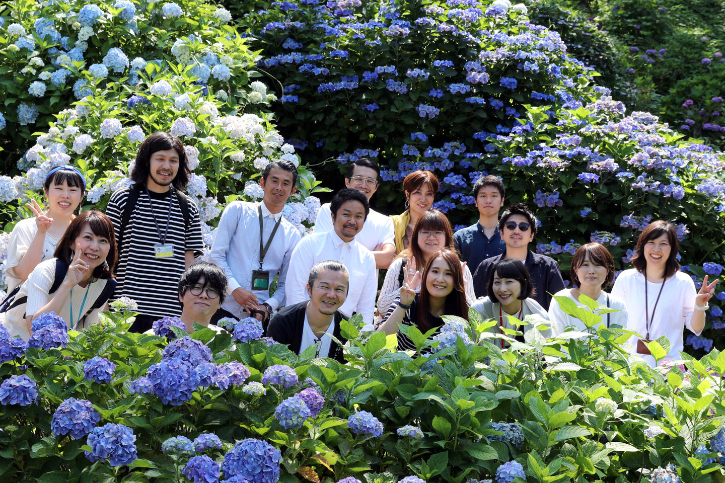 紫陽花の時期に、Hamee社員と一緒に小田原城の麓でお弁当を食べた時の一幕。前列右から3番目が音羽さん