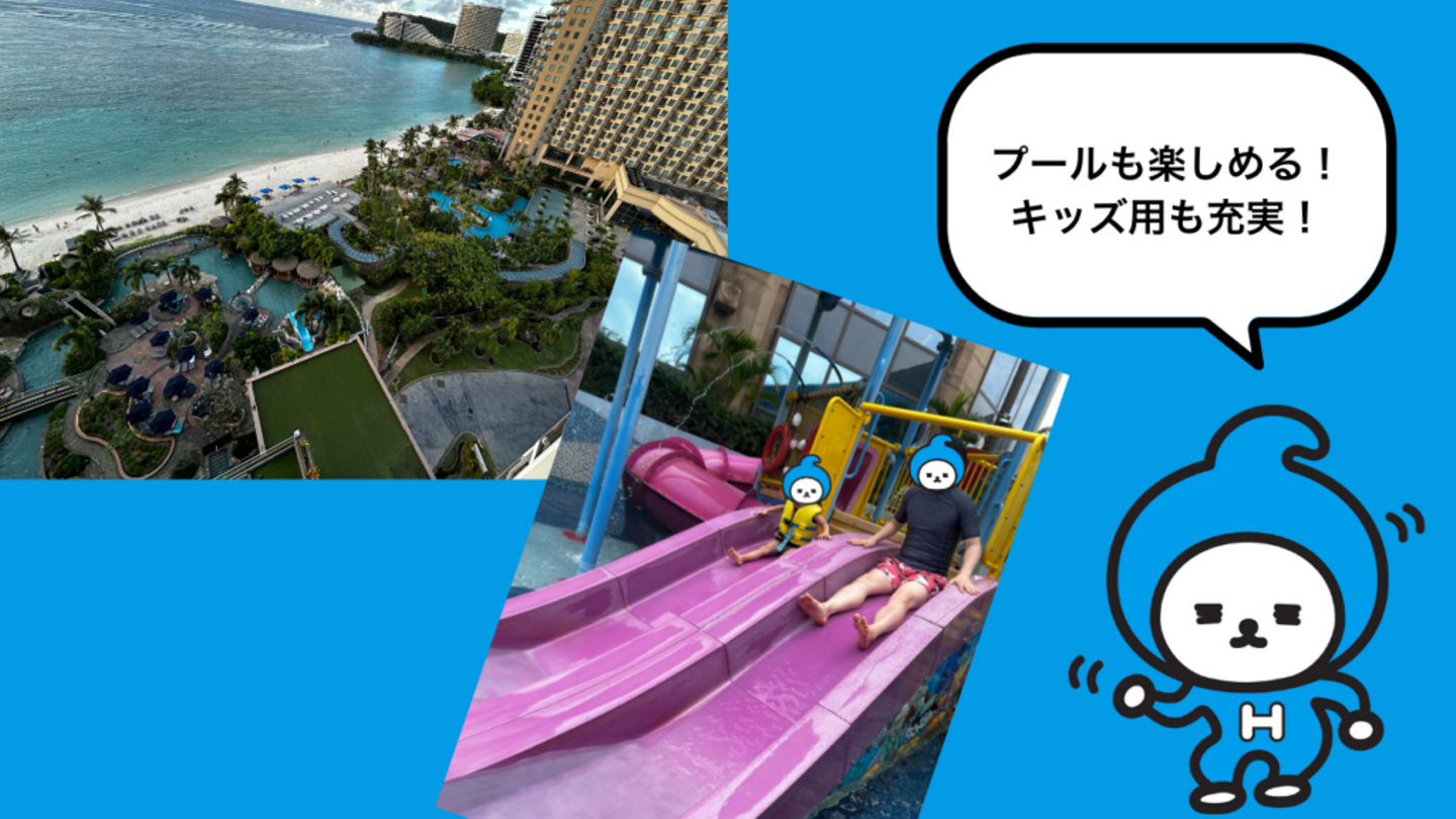 ホテルには広々としたプールがあり、隣接する「デュシット ビーチリゾート グアム」のキッズプールも利用可能でした。