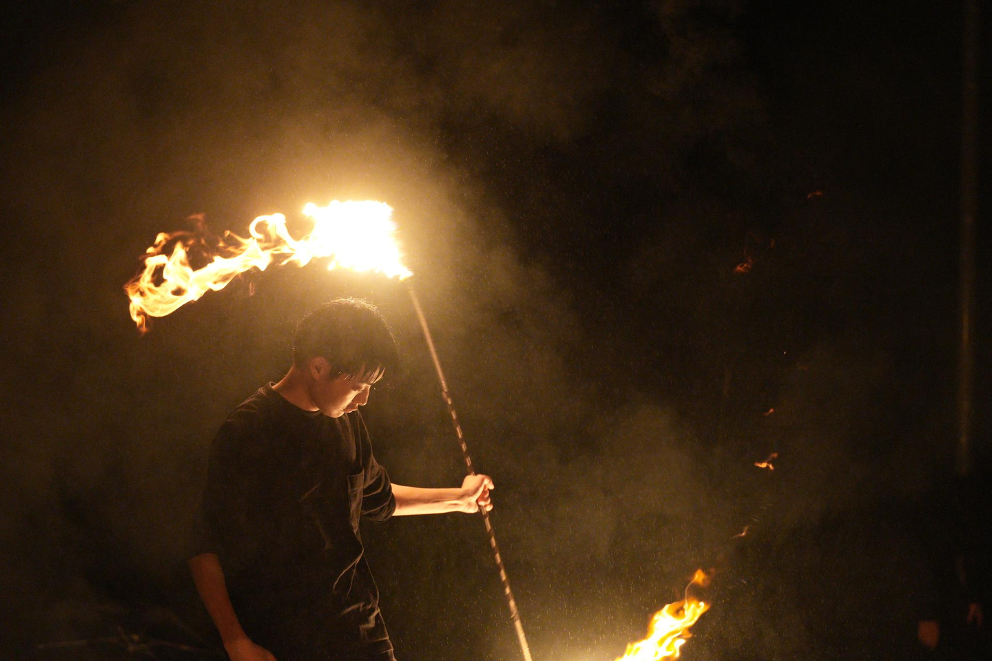 火を扱うという危険なものであること、そして私たちの演技はお客さんに見せるものであることからその練習は厳しく、朝・昼・業後と一日中練習をしていました。しかし、練習を通して自分のスキルが向上することや自分たちの演技でお客さんが楽しんでくれることに嬉しさ・面白さを感じ、次第にのめり込んでいきました。
