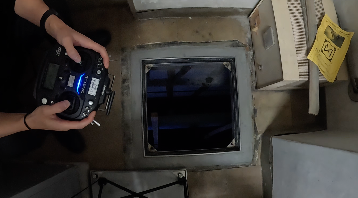 今回は、リベラウェア社の「IBIS」という狭小空間点検用ドローンを使用して地下ピットをお借りして