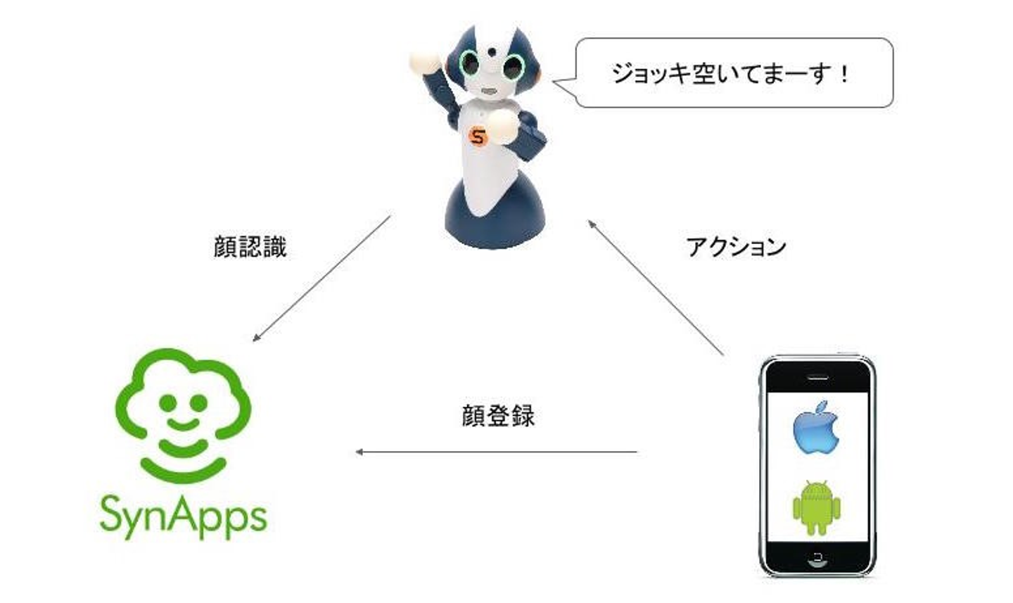 スマホを使ってSotaにセリフを言わせたり、顔認識機能によりお客様の顔を覚えさせたりすることができます。