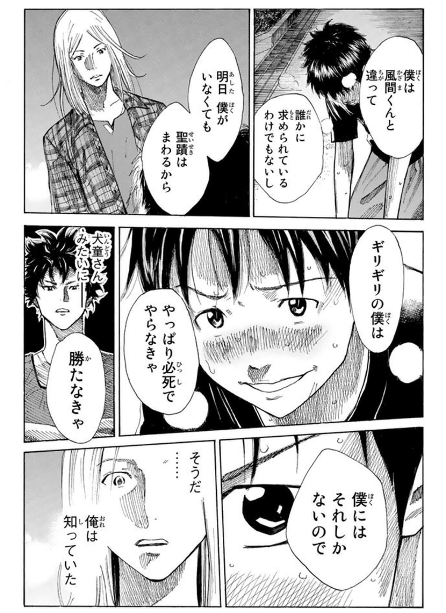 高校生からサッカーを始めた主人公のつくし。周りに比べて実力が劣る分、みんなが遊んでいる間や寝ている間に必死で練習をしていました。ある時、チームメイトの風間くんから「何でそんなに頑張れるの?」と尋ねられます。そこで主人公のつくしは、、、、すいません長いですね(笑)