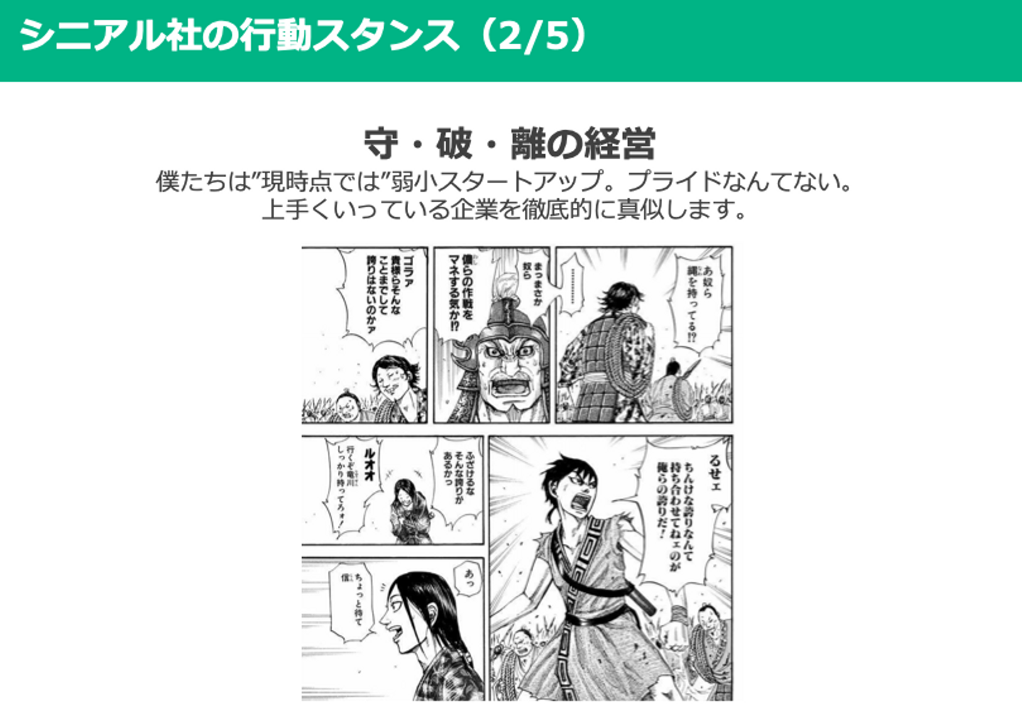 シニアル社の採用Pitch資料に「行動スタンス」という項目があります。