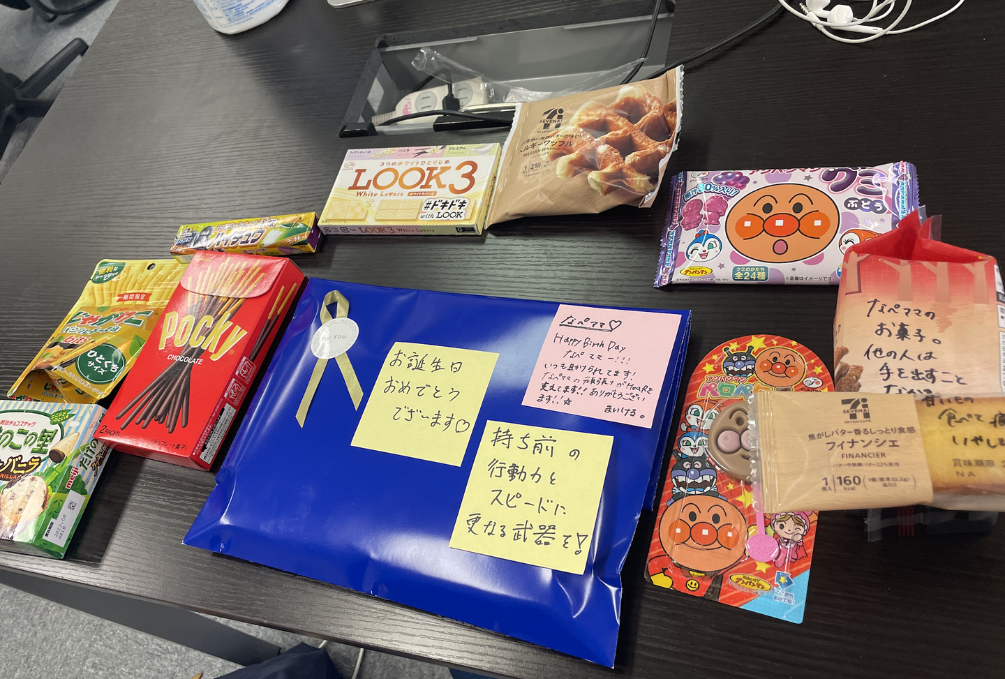 お誕生日に本をプレゼントしています!その時、その人にあった本を選んでくれます。それだけでなく、メンバーみんなからもお菓子やメッセージのプレゼントがあります。みんなのお誕生日はみんなでお祝いする、そんな文化です。何人になっても続けていきたいなぁと考えています!
