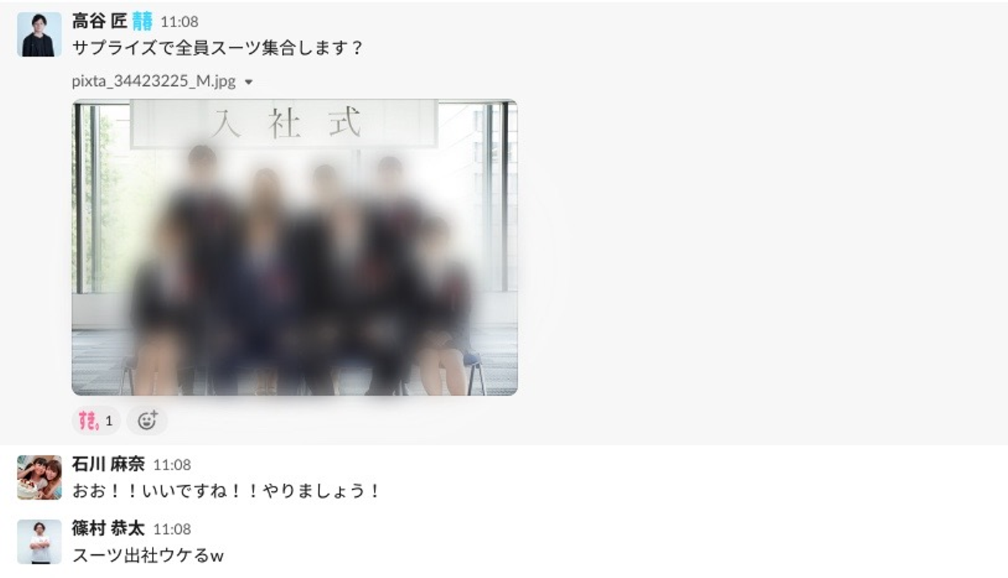 「サプライズで全員スーツ集合します?」