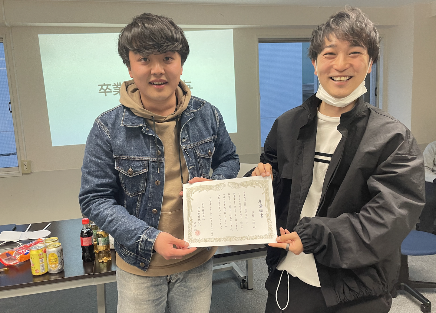 2022年3月 下村さんの卒業式。しっかりと送り出しましたが、すぐに戻ってきてくれました(笑)。