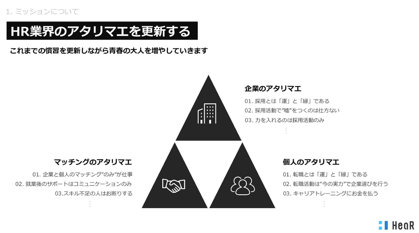 HeaRでは、企業・個人・マッチングのアタリマエの更新を目指しています。
