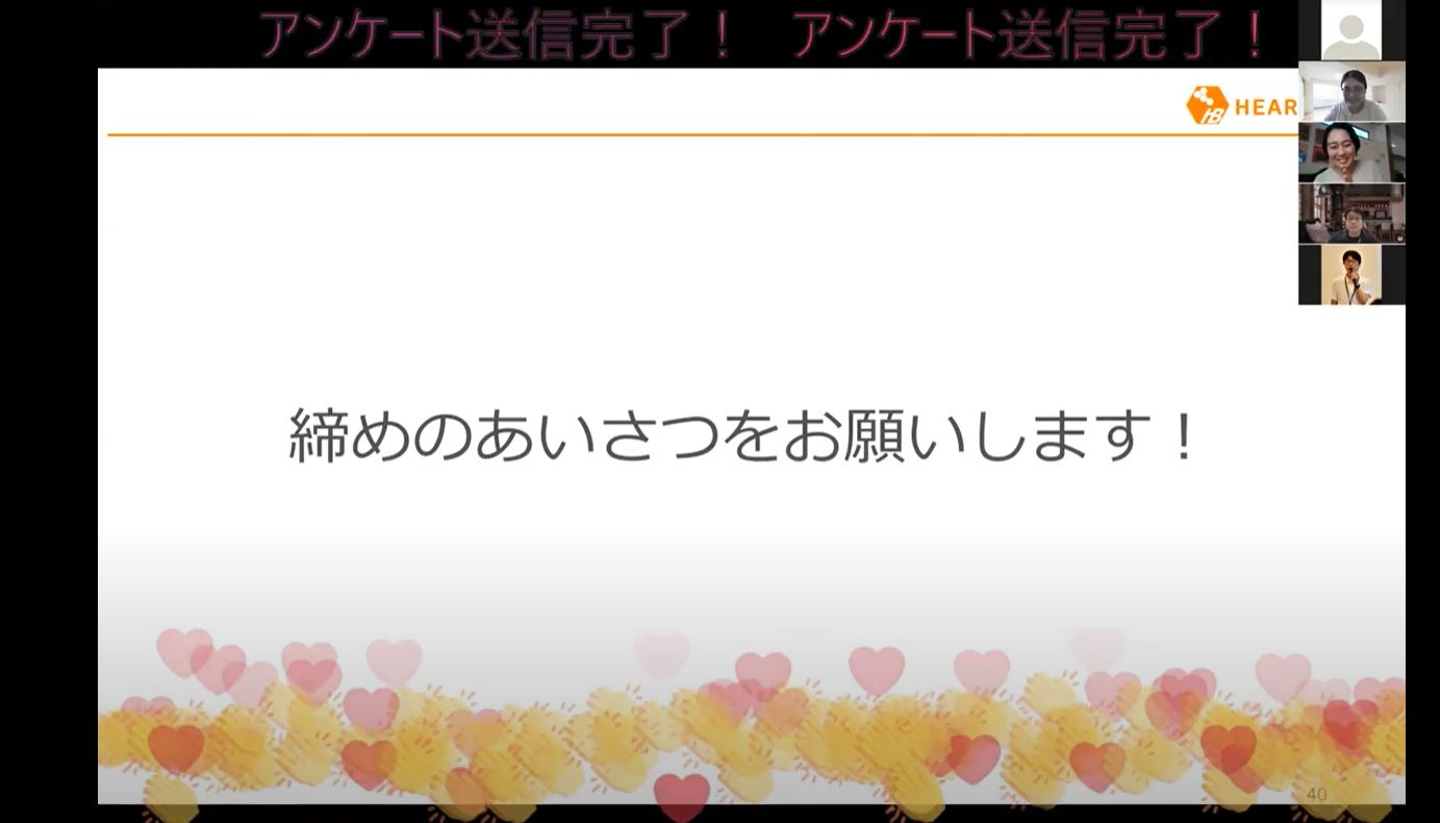 ハートビーツでは、全メンバーが参加しての朝会を、毎月1回オンラインで実施しています。