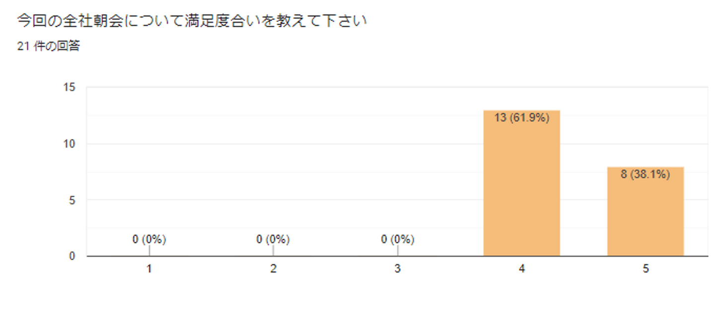 内容は2項目で、「会の満足度(5段階評価)」と、「意見・要望・感想(自由記入)」をもらっています。その結果をもとに、毎月改善を続けています。