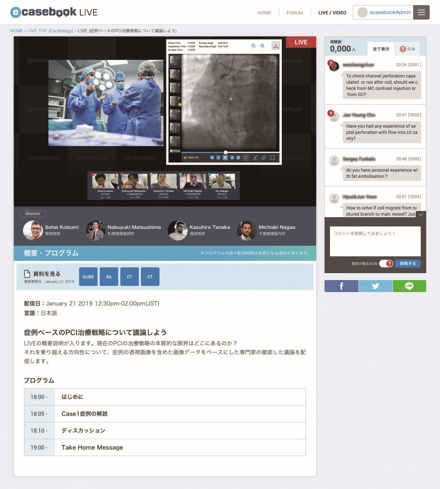 今回は、2022年7月2日(土)14:00にe-casebook LIVEで配信された教育ライブ「カテーテルアブレーションを極める #02」という講義形式のライブに密着しました。この配信では、自宅や病院、会場にいる複数の登壇者を遠隔でつなぎ、大阪オフィスに設置された配信基地からリアルタイムでライブを配信しました。その際、配信現場のキュレーターたちはどのような役割を果たしていたのでしょうか。準備段階から本番当日までを取材しましたので、ぜひご覧ください。