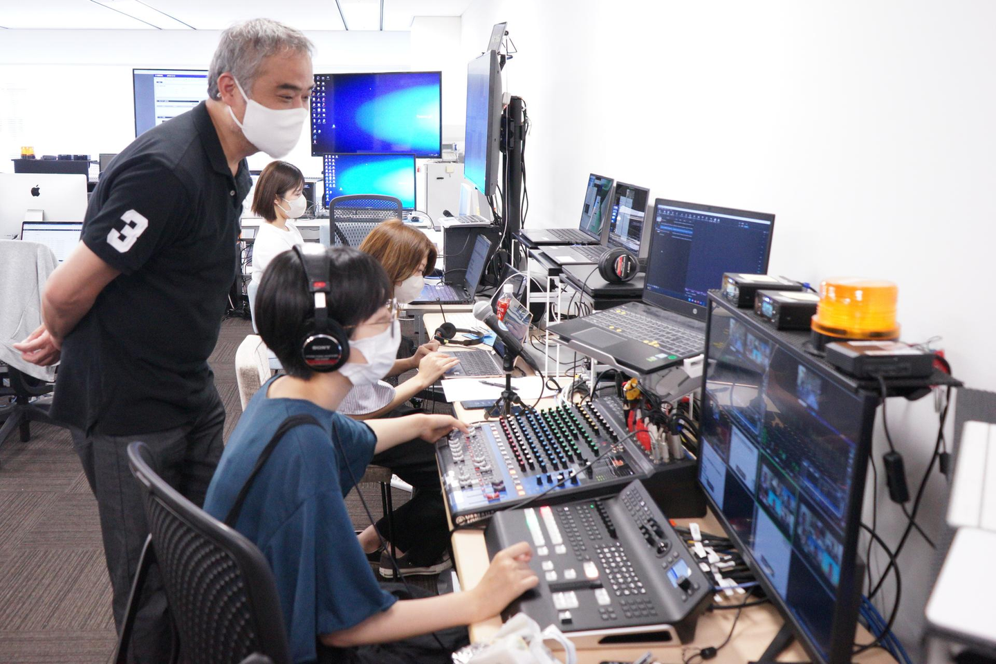 キュレーターは本番配信の2時間前に大阪オフィス配信基地に来て、ライブ配信がスムーズにいくように映像スタッフと連携をとって全体の指揮や進行を行います。
