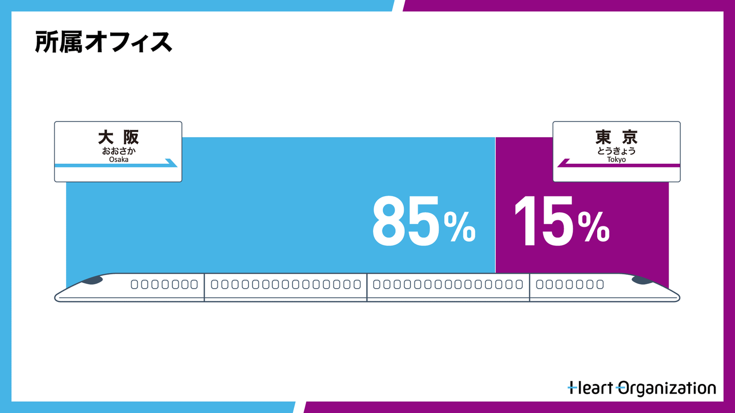 本社が大阪にあるので大阪本社所属メンバーが多いです。大阪本社と東京オフィスの2拠点があり、働く場所を選ぶことができます。