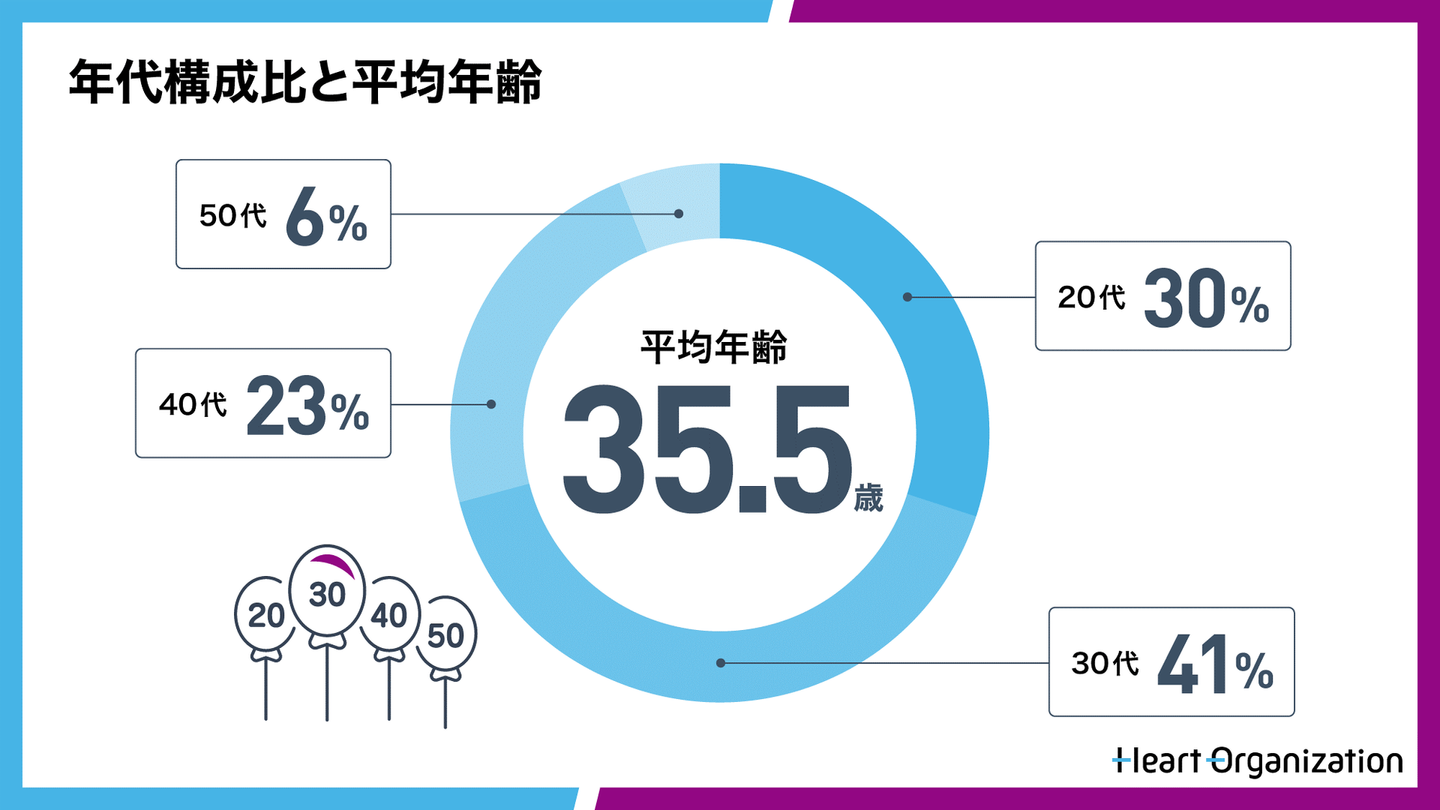 平均年齢は35.5歳。一番多いのは30代で4割です。経験を積んだ腕利きのメンバーがたくさん活躍しています。
