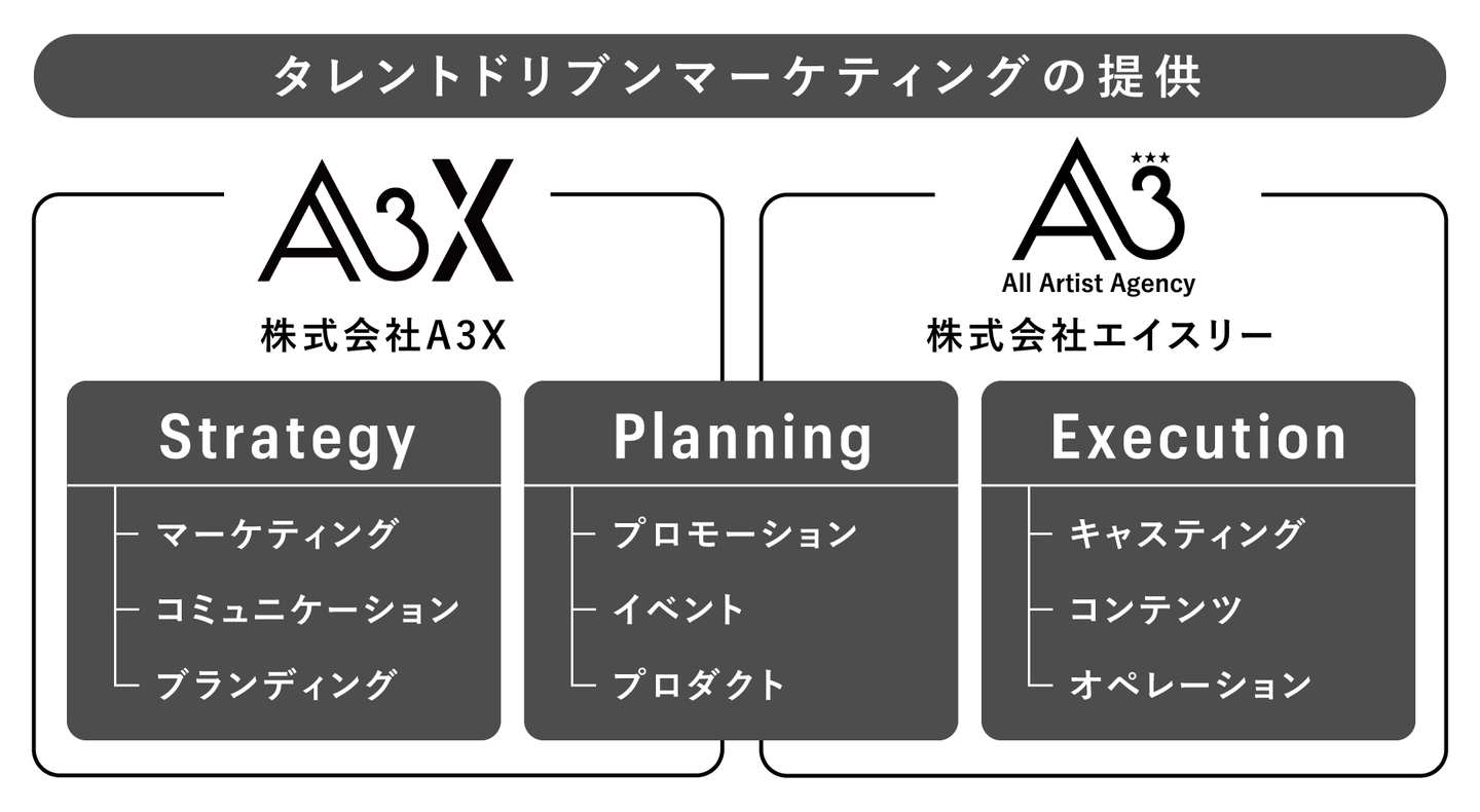 タレントドリブンマーケティング提供における、A3Xとエイスリーの役割