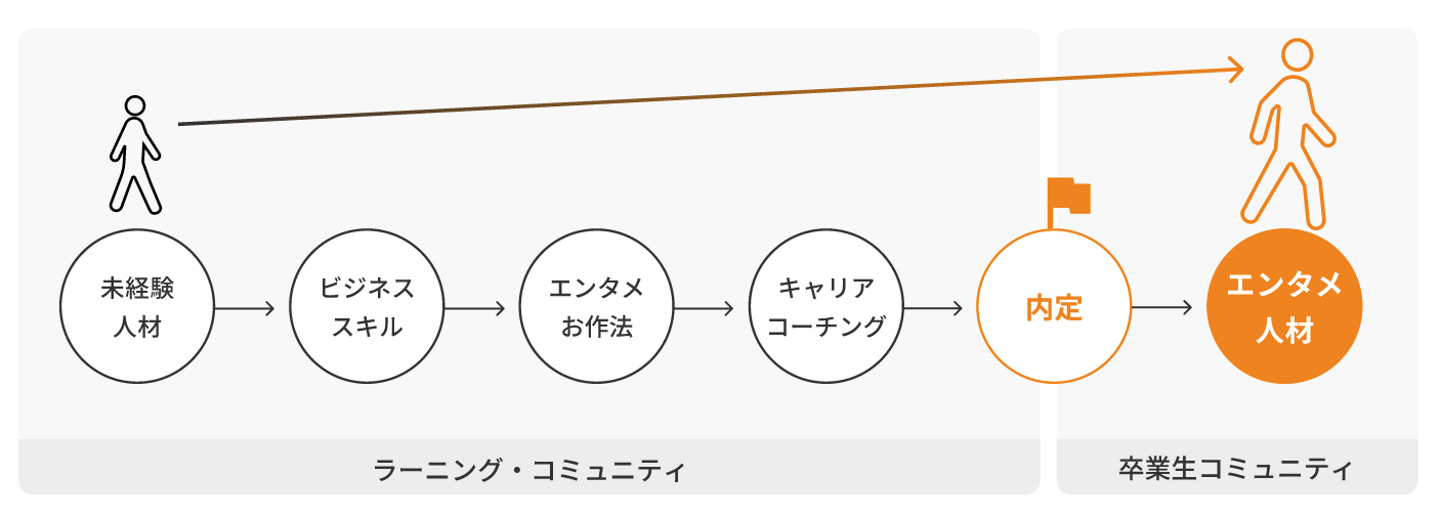 エンタメ業界の成長課題の一つに人材確保が挙げられます。しかし、エンタメ業界では特有のスキルやマインドが求められることから、未経験人材がエンタメ企業に勤めることは難しく、また入社できたとしても仕事内容やカルチャーに対するイメージと現実のギャップによって、早々に離職に至ってしまうケースが見受けられています。