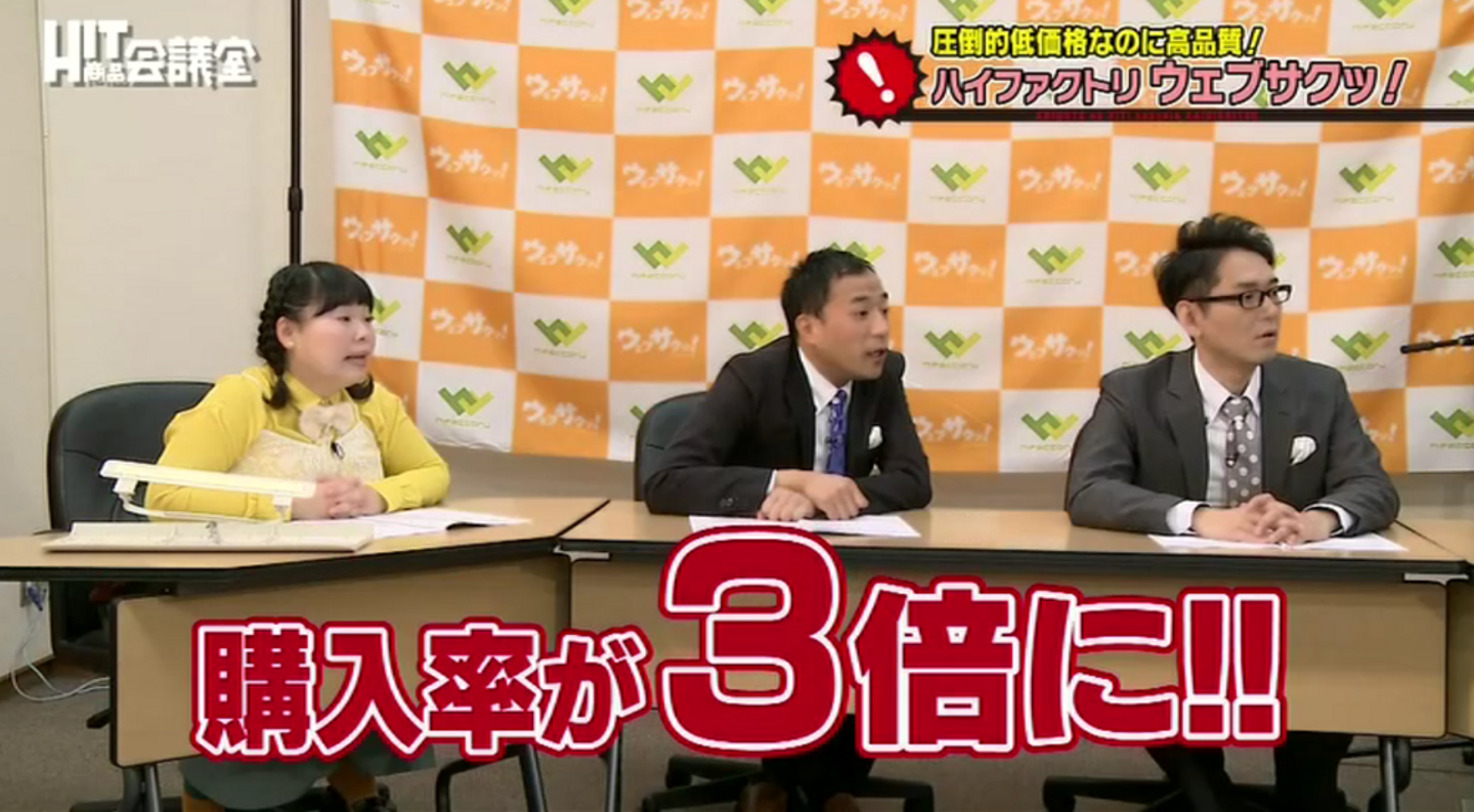 以前、テレビに出演させて頂く機会があり、お笑い芸人のナイツさんと、ニッチエの近藤さんの番組に、当社サービスである「ウェブサクッ!」を取り上げて頂きました。(2017年1月撮影)