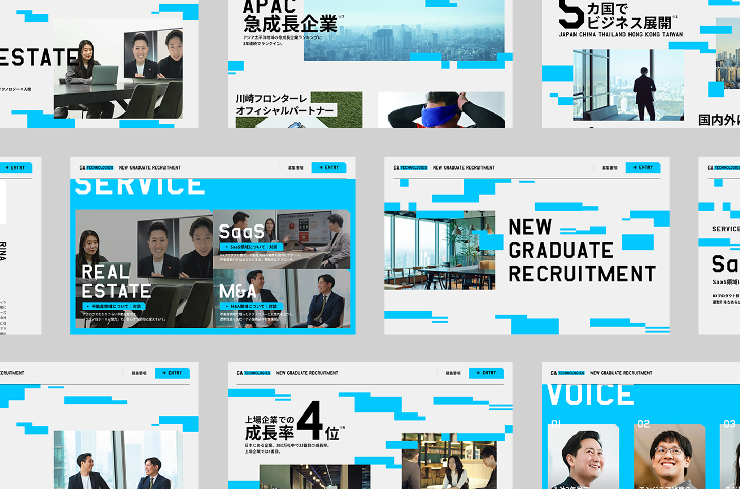 「テクノロジー×イノベーションで、人々に感動を生む世界のトップ企業を創る。」を理念に掲げる株式会社GA technologies(ジーエーテクノロジーズ)。ハイライツでは、その新卒採用向けのブランディングとしてキービジュアルをはじめ、WEBサイト、グッズのクリエイティブディレクション、アートディレクションを担当しました。