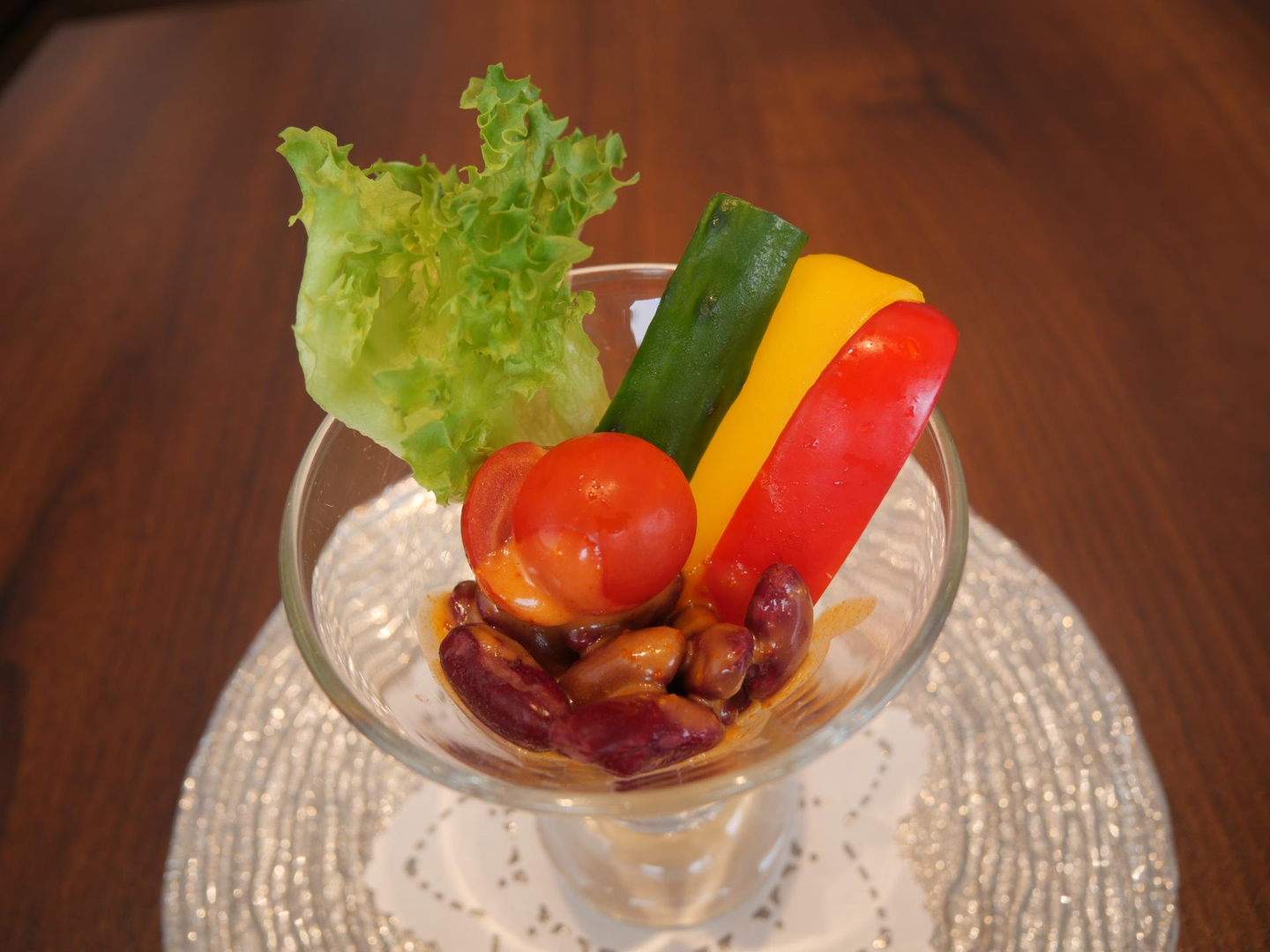 「豆と野菜のサラダ 刺激強めなドレッシング」の名の通り、ピリリと唐辛子が聞いたドレッシングがお口の中からインドを感じさせます。ここで急激に『RRR』の世界観に入り込めたような気がしました。視覚と味覚はこの時すでに完敗。