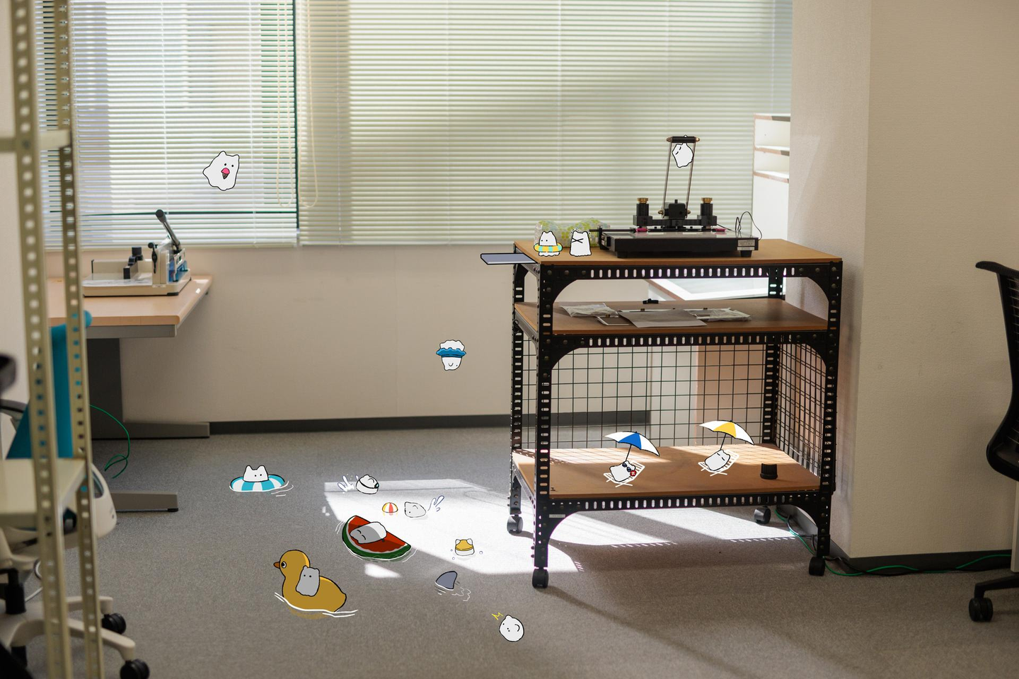 最新のオフィス写真に加え、アニメスタジオらしく写真の中にイラストを加えてみました。少し小さいのですが、なにが描かれているのか覗いてみてください。