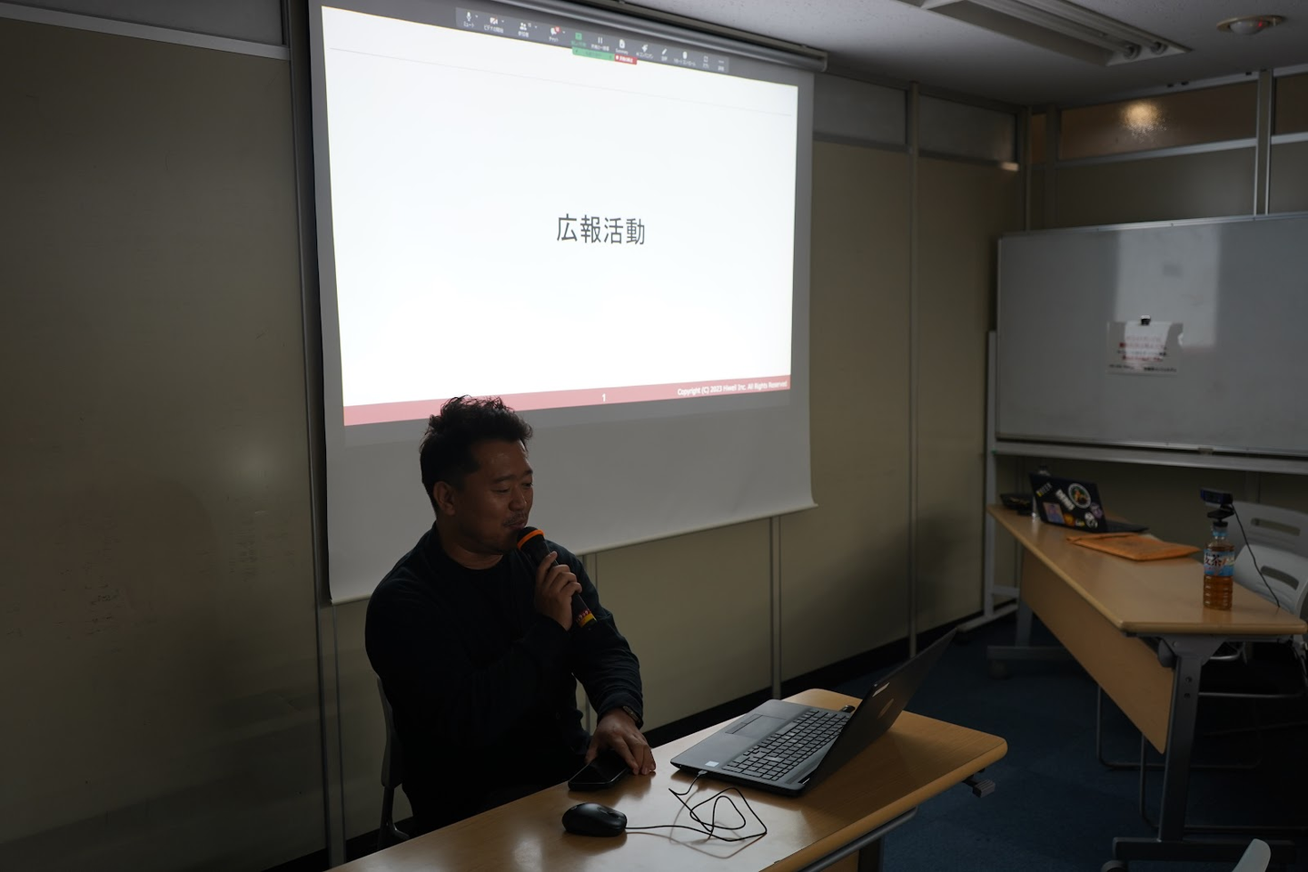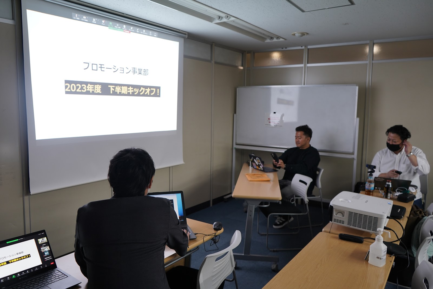 遠方在住者などリモート参加者はZoomでの参加となりましたが、都内の会議室にハイウェル全社員が集いました。