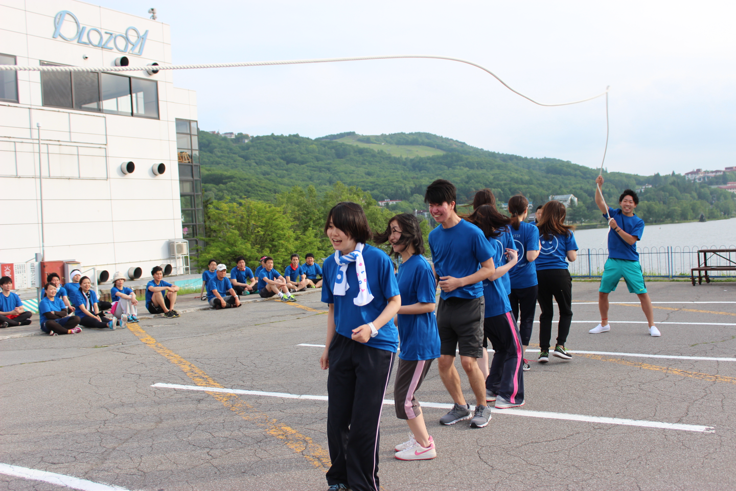 今回から初の試み、エリア対抗長縄跳び大会です。およそ10キロ走った後の縄跳びはみんな辛そうです(笑)