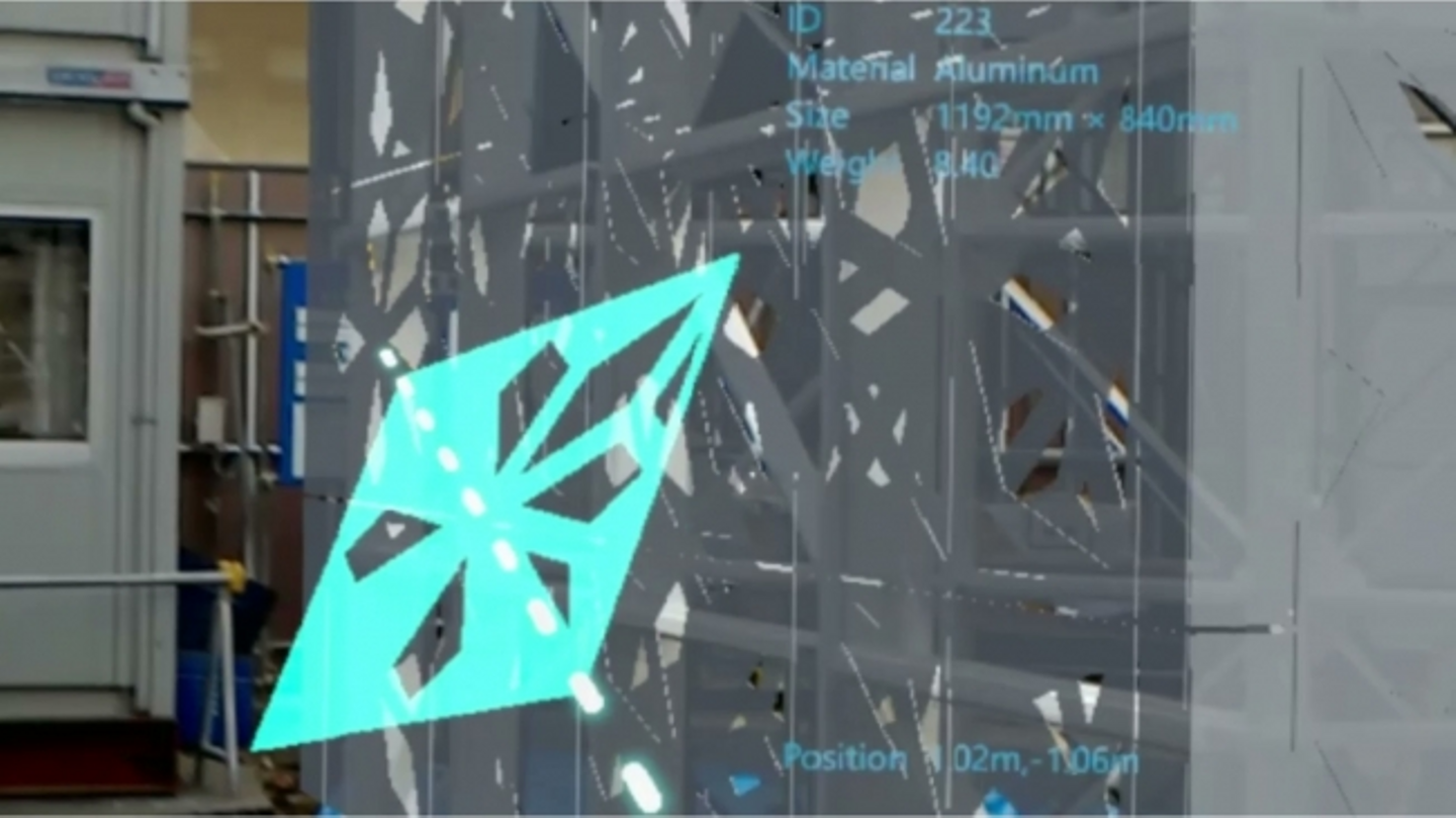 個別のIDで管理された各パネルをHoloLensを装着した作業員が見ると、それぞれのパネルのサイズや重さなどの情報が表示されたり、ホログラムによって現実空間における取付位置が指定されるため、各パネルごとの取付位置の間違いや確認作業工数を短縮することが可能となります。