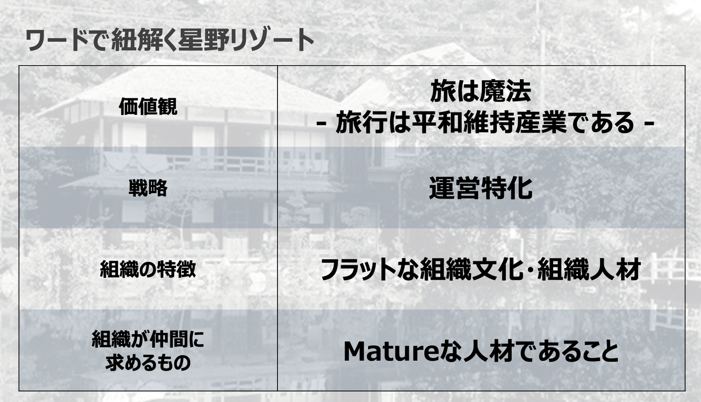 そういった疑問に、実際にカジュアル面談で使用しているスライドを交えながら、星野リゾートに関するキーワードをゆるりと解説していきます。皆様の転職活動にご活用を頂けたら幸いです!