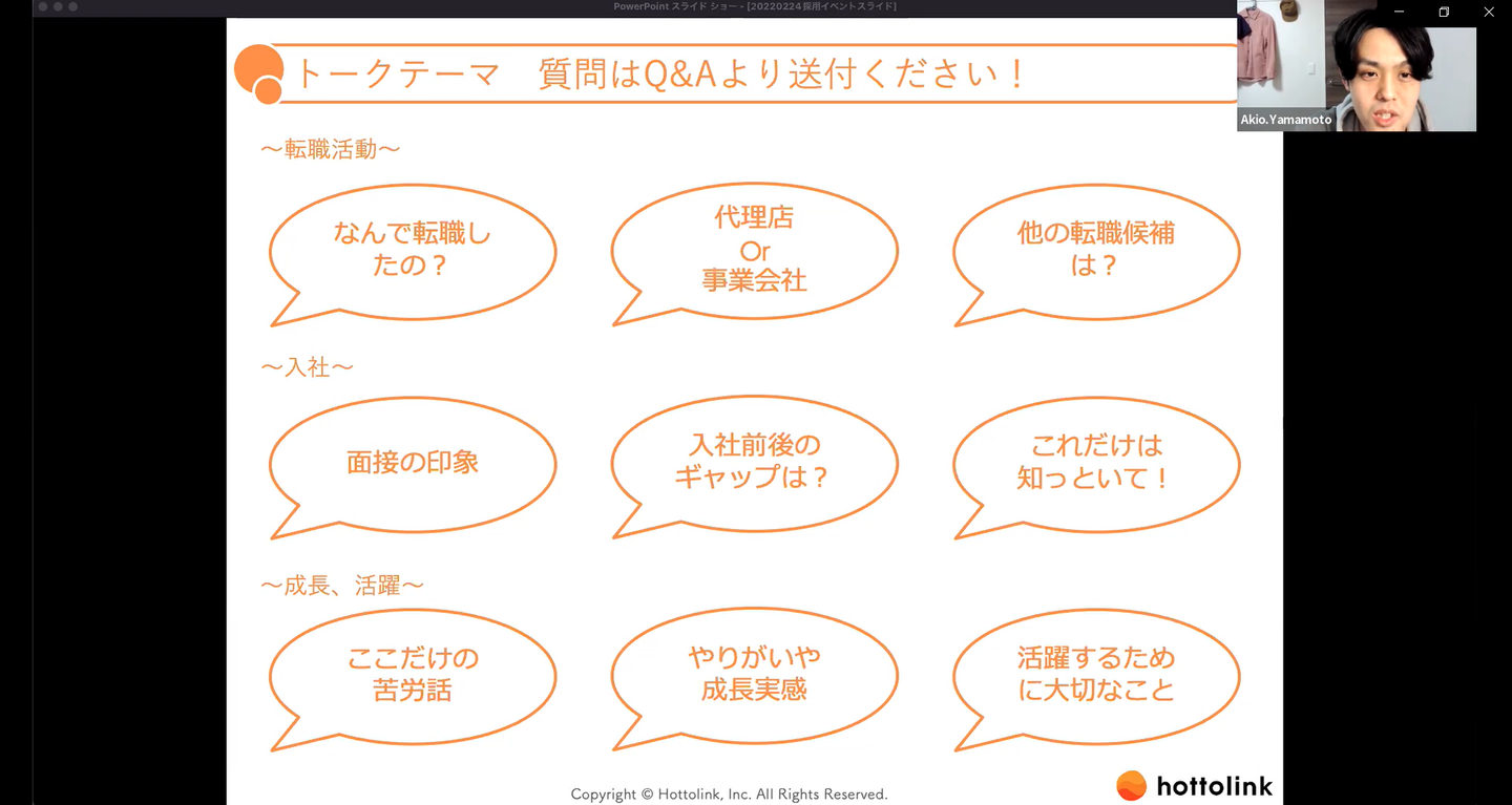 一つ目のテーマは「なぜホットリンクへ転職したのか?」です。転職に至った経緯などを教えてください。