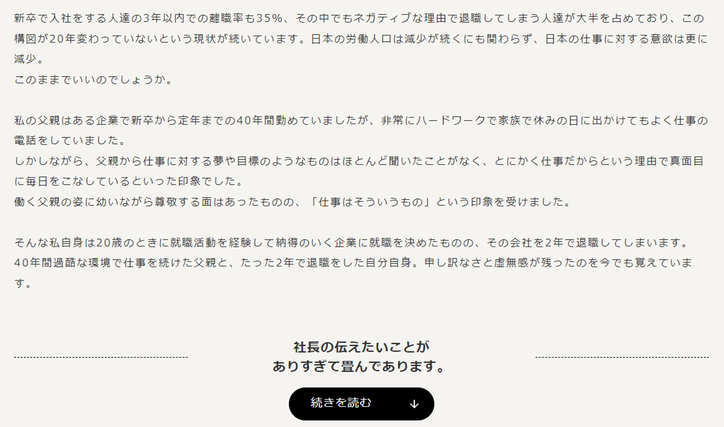 代表メッセージは、伝えたいことが多すぎて畳まれています。(笑)