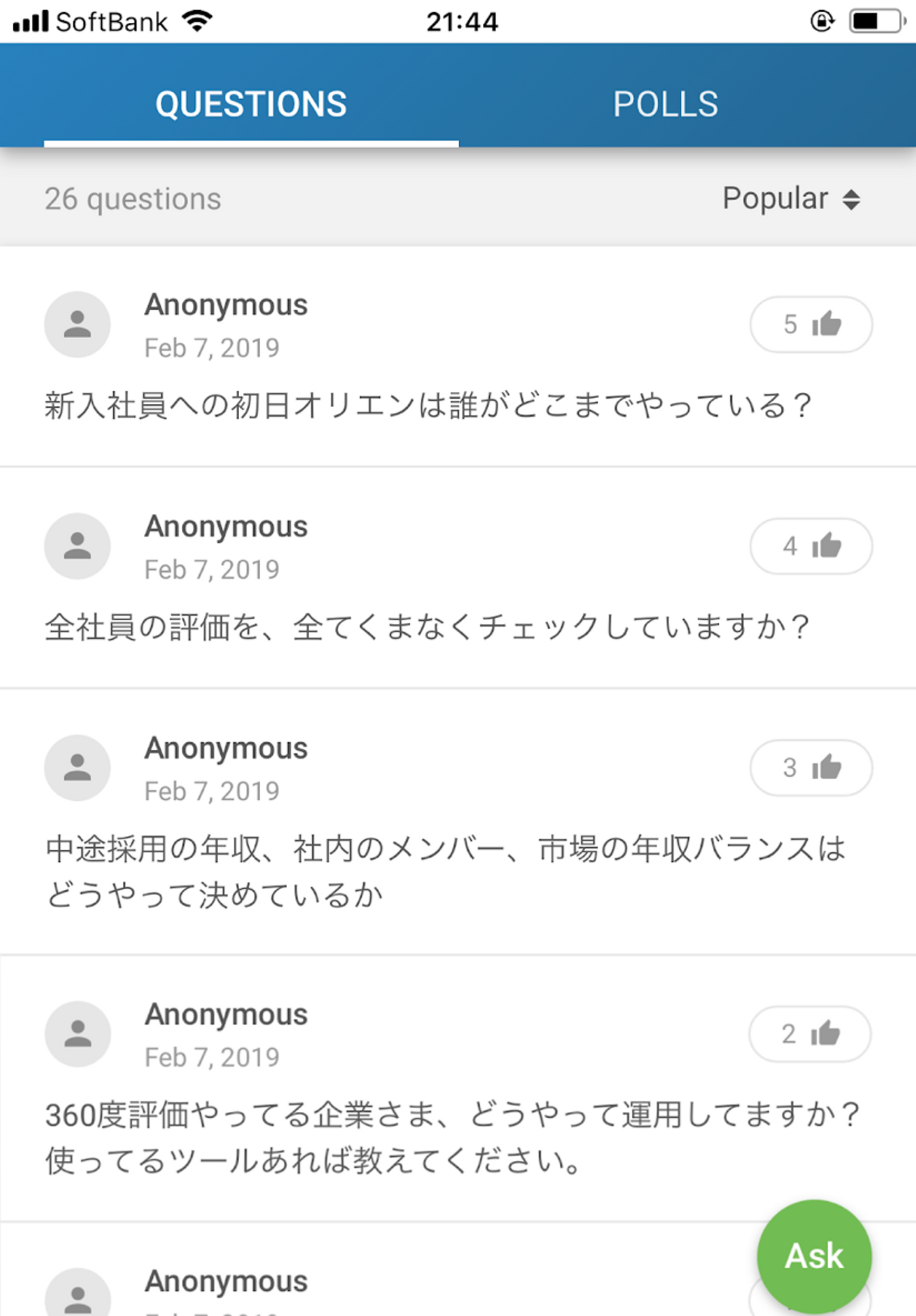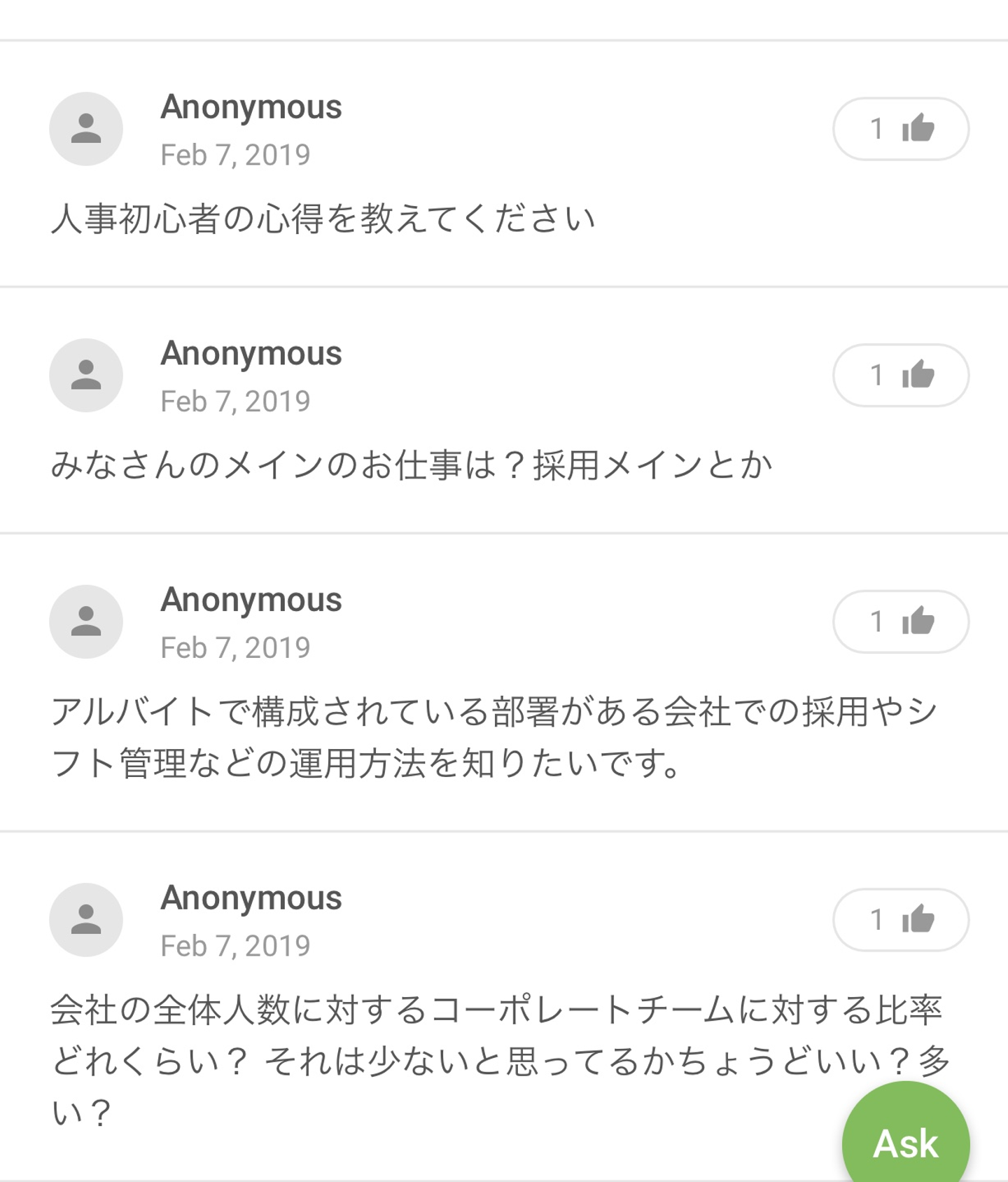 ちなみにsli.doでは下記のような質問があがっていました。(一部抜粋)
