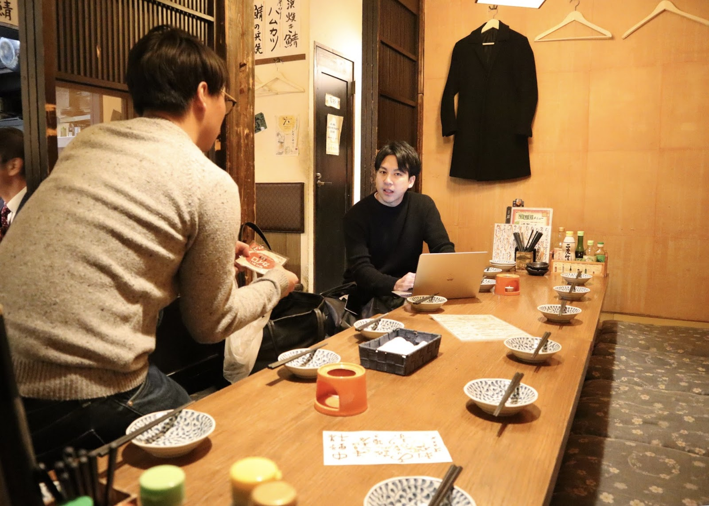 当初の予定より参加人数が多くなったことと、弊社オフィスにちょうどよいスペースがなかったことから、お店で実施することにしました。