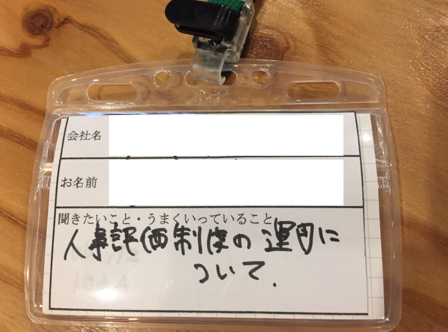 初対面の方が多かったので、各自会社名と名前を記入した紙をネックストラップに入れて着用することにしていました。皆さんの会話のネタになればと思い、その紙に「今日皆に聞いてみたいこと」を書いてもらうことにしたのですが、そもそもsli.doで質問を管理をしていたので、我々も紙の質問に一度も目がいきませんでした。。次回は改善します!