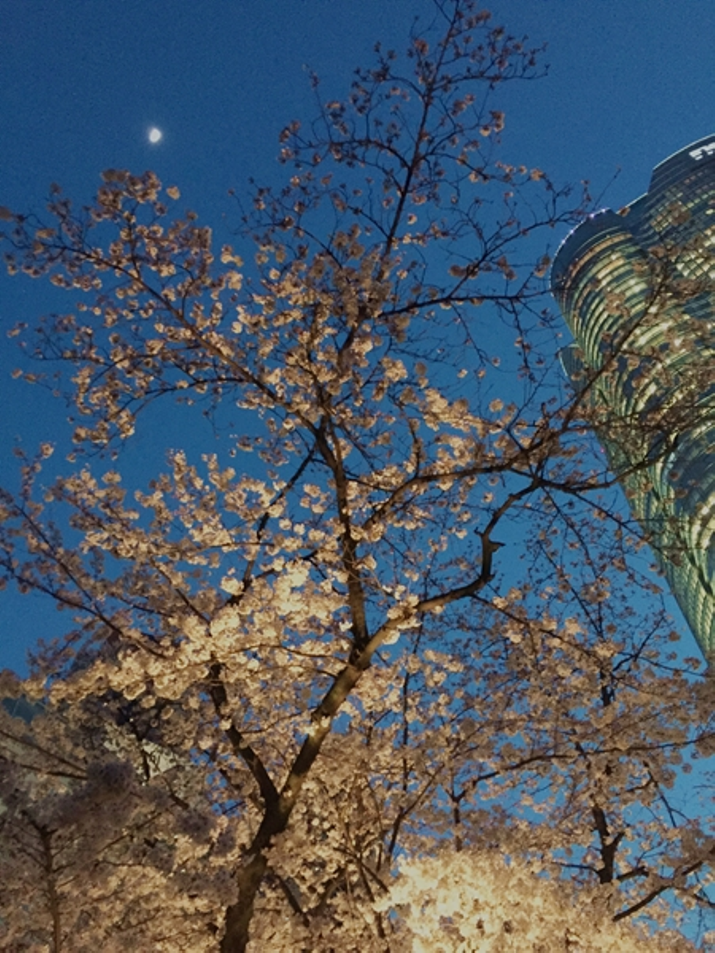 赤坂にあるオフィスから一駅だけ電車に乗り、乃木坂から六本木ヒルズまでを散策。ライトアップされた夜桜がロマンチックでした。
