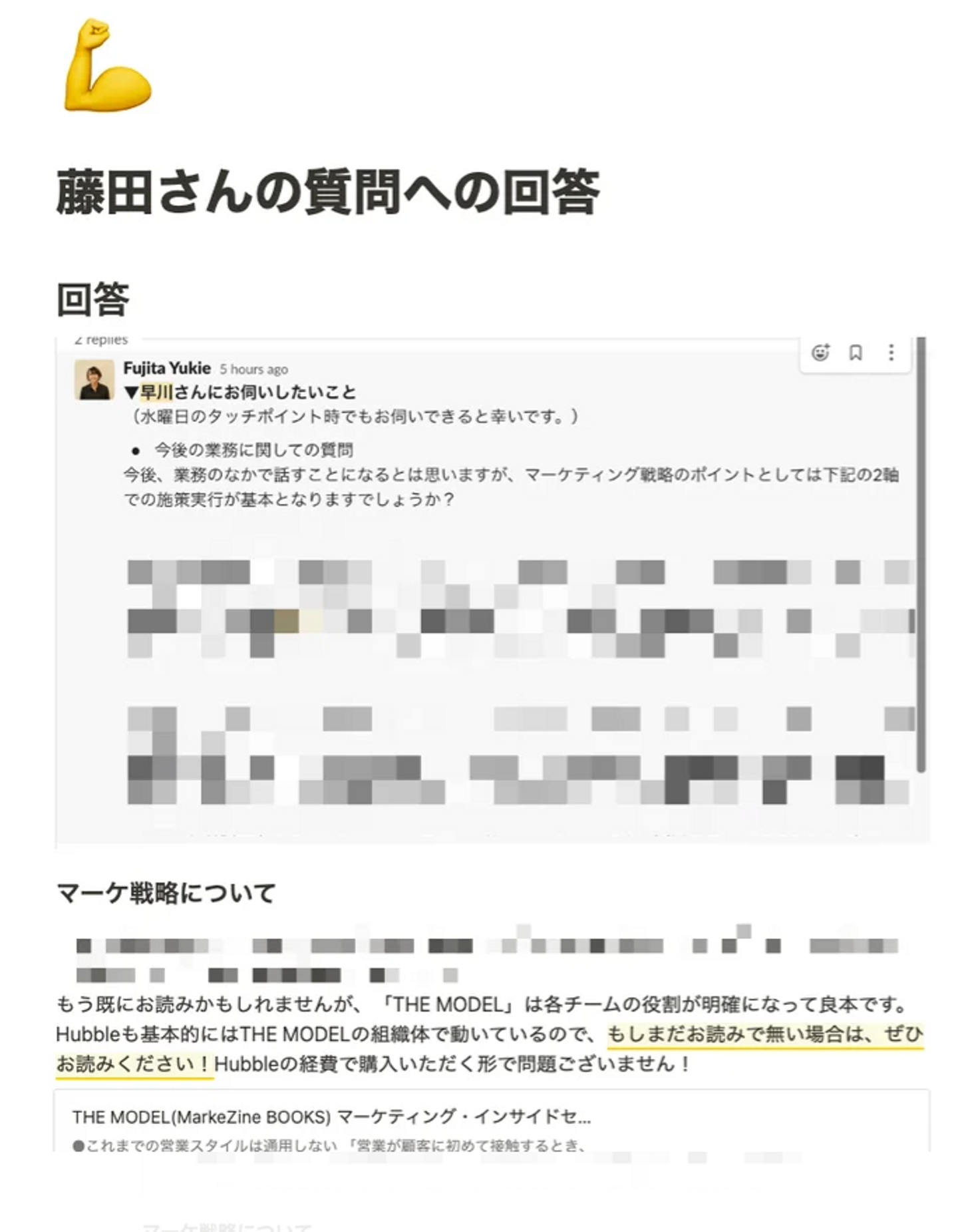 あとは、面談の時間だけでは聞ききれなかった内容を後日このような形で早川から送ってもらい、Hubbleへのジョインする決め手となりました。