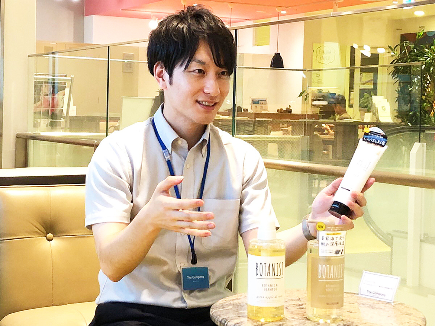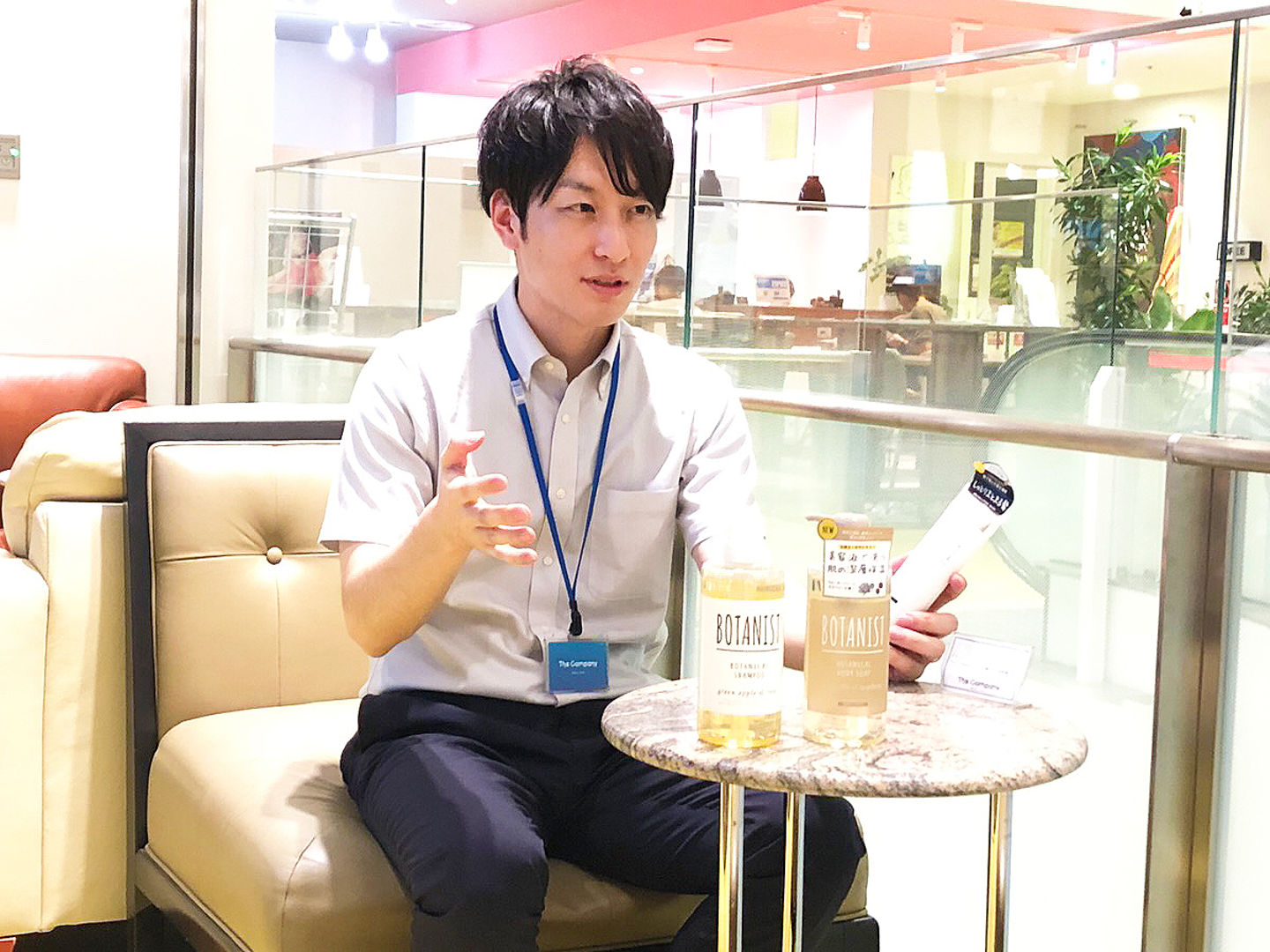 そうですね。そしてちょうどそんな頃に、店頭でよく目にしたのがBOTANISTでした。ドラッグストアの業界は、どう頑張っても棚落ちや商品スペースの確保が難しいことは往々にしてよくありますが、BOTANISTはずっと目立つ位置で展開できていて、とても不思議に思っていたんです。しかしそれが店舗側との関係性の構築や、ブランディングの努力などによって保たれていたことは入社してからわかりました。 ただそうやって最初に「なぜだろう?」と疑問に思い、調べていく中でI-neという会社には強く興味を惹かれていきました。さらに面接の場などを通じて会社の雰囲気などにも触れていくうちに「I-neなら自分自身が目指したい成長を実現できるのではないか」といった思いがどんどん強くなり、ご縁もあって入社させていただきました。