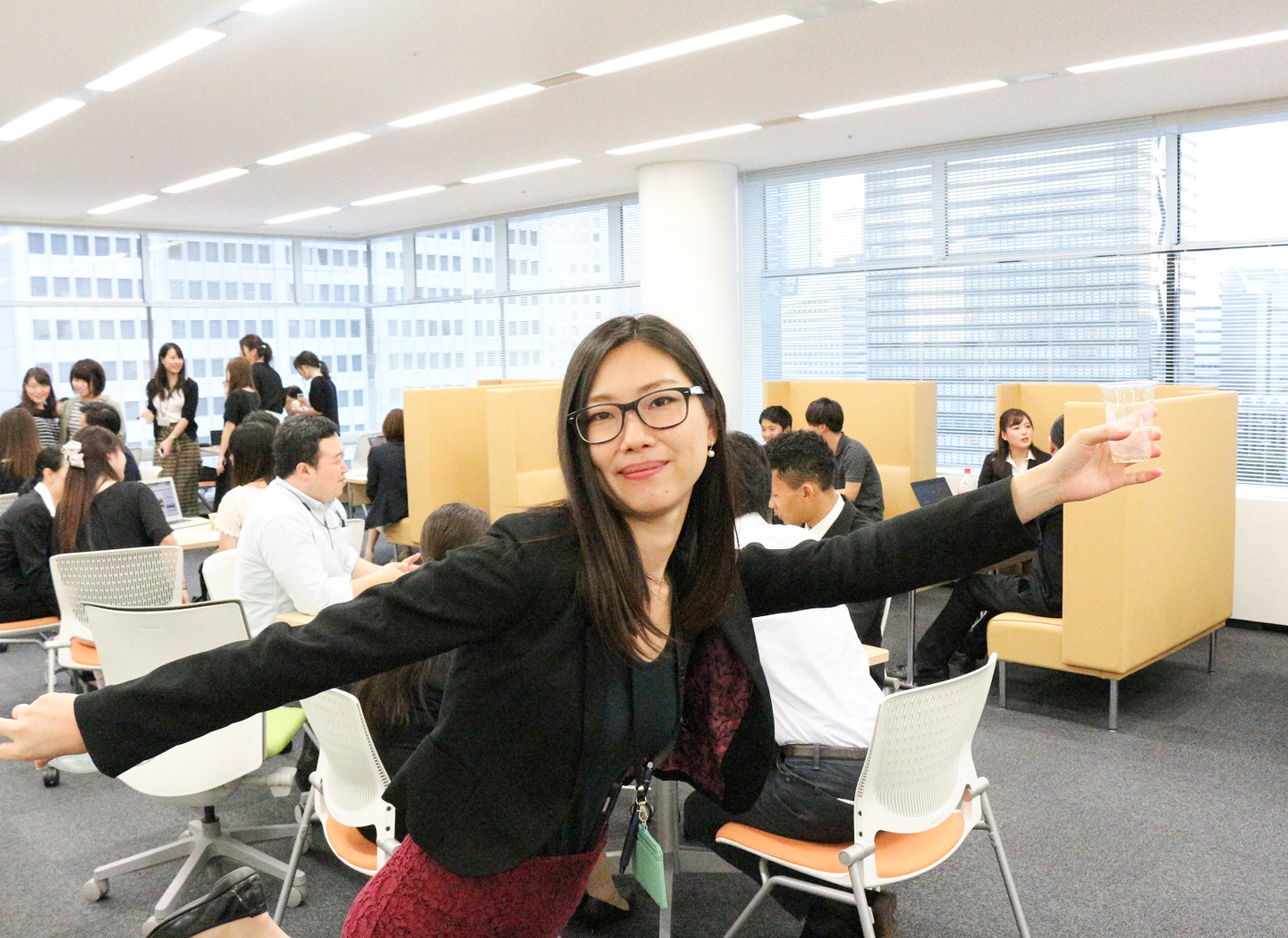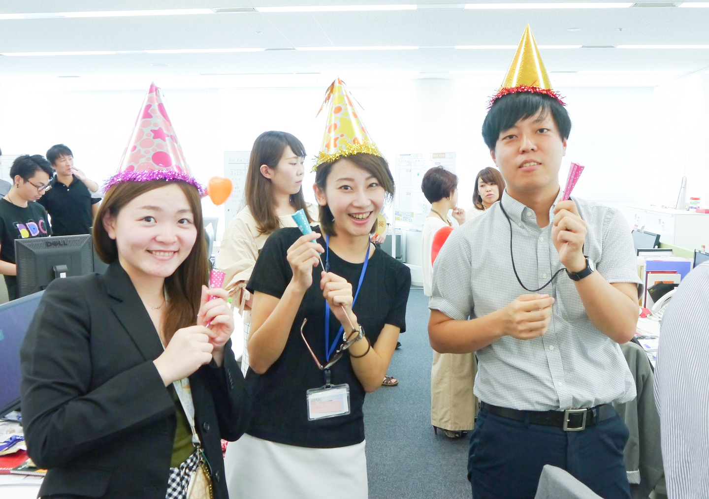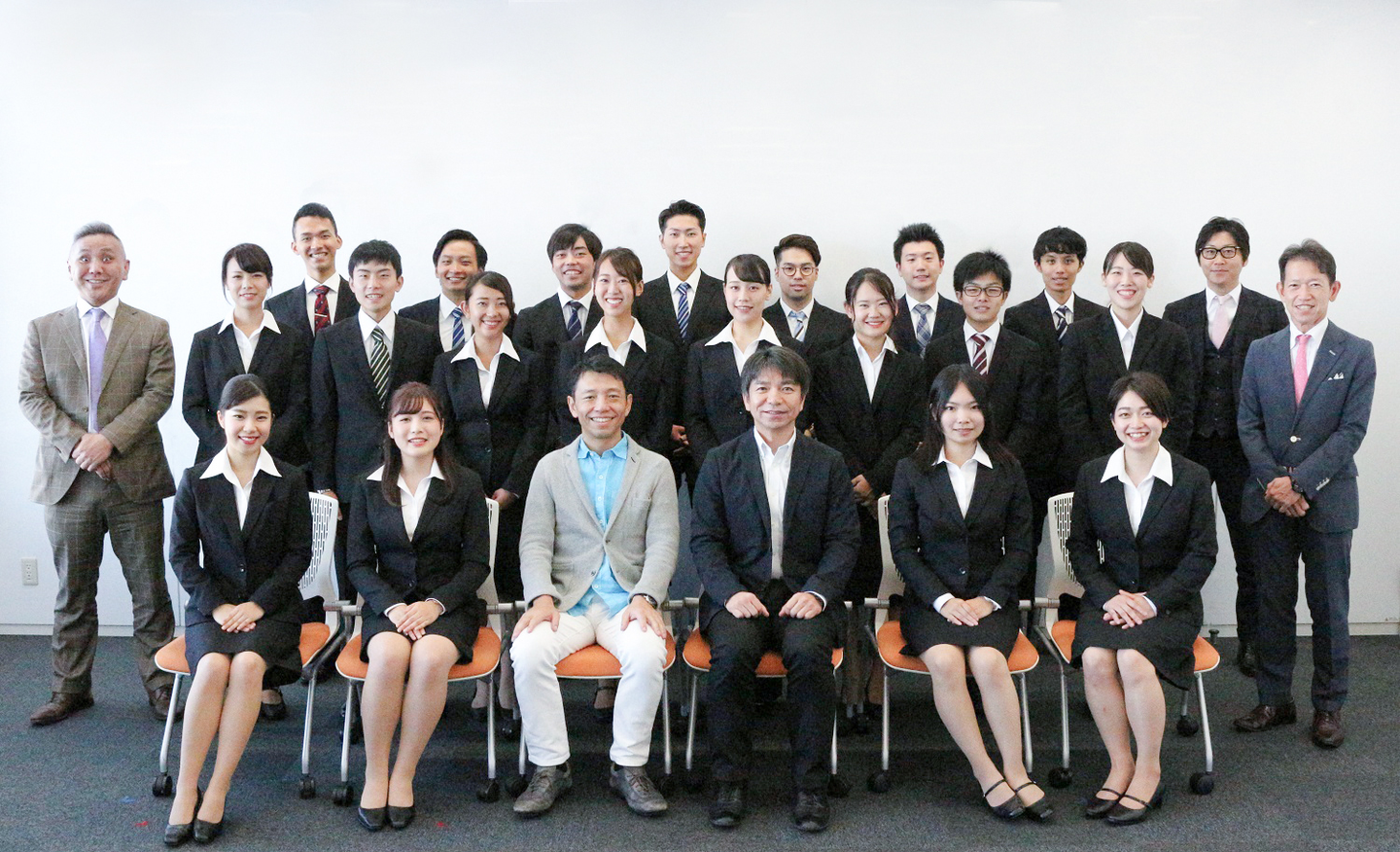 本社のスタッフ全員で、新卒たちを出迎えます。