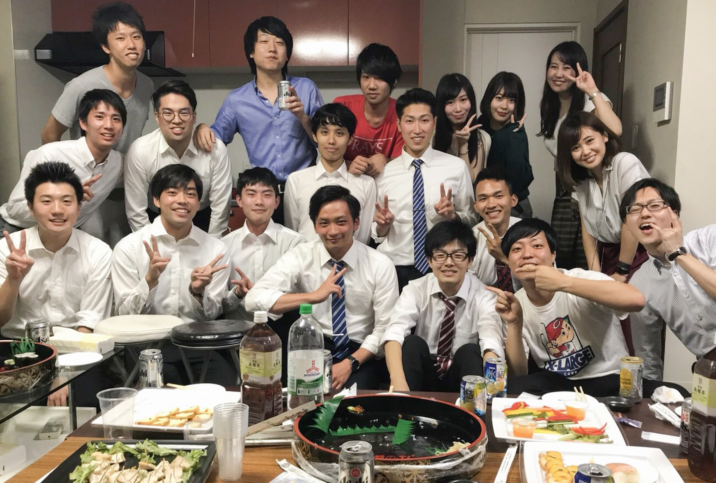 「内定おめでとうー!」に合わせてクラッカーを鳴らし盛大にお祝いします。