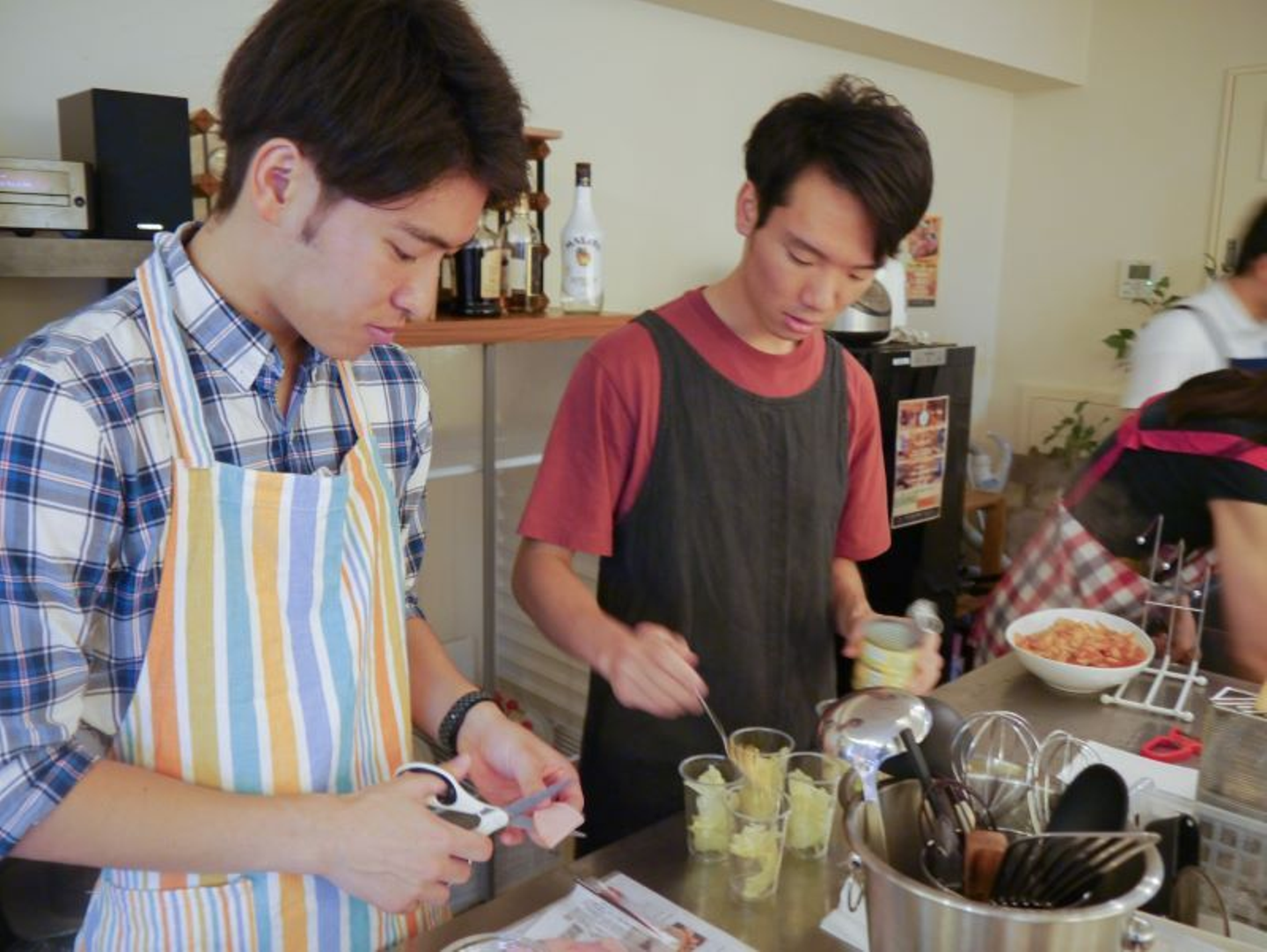 「何部だったの?」「得意料理はなに?」など、料理をしながら自然に交流。